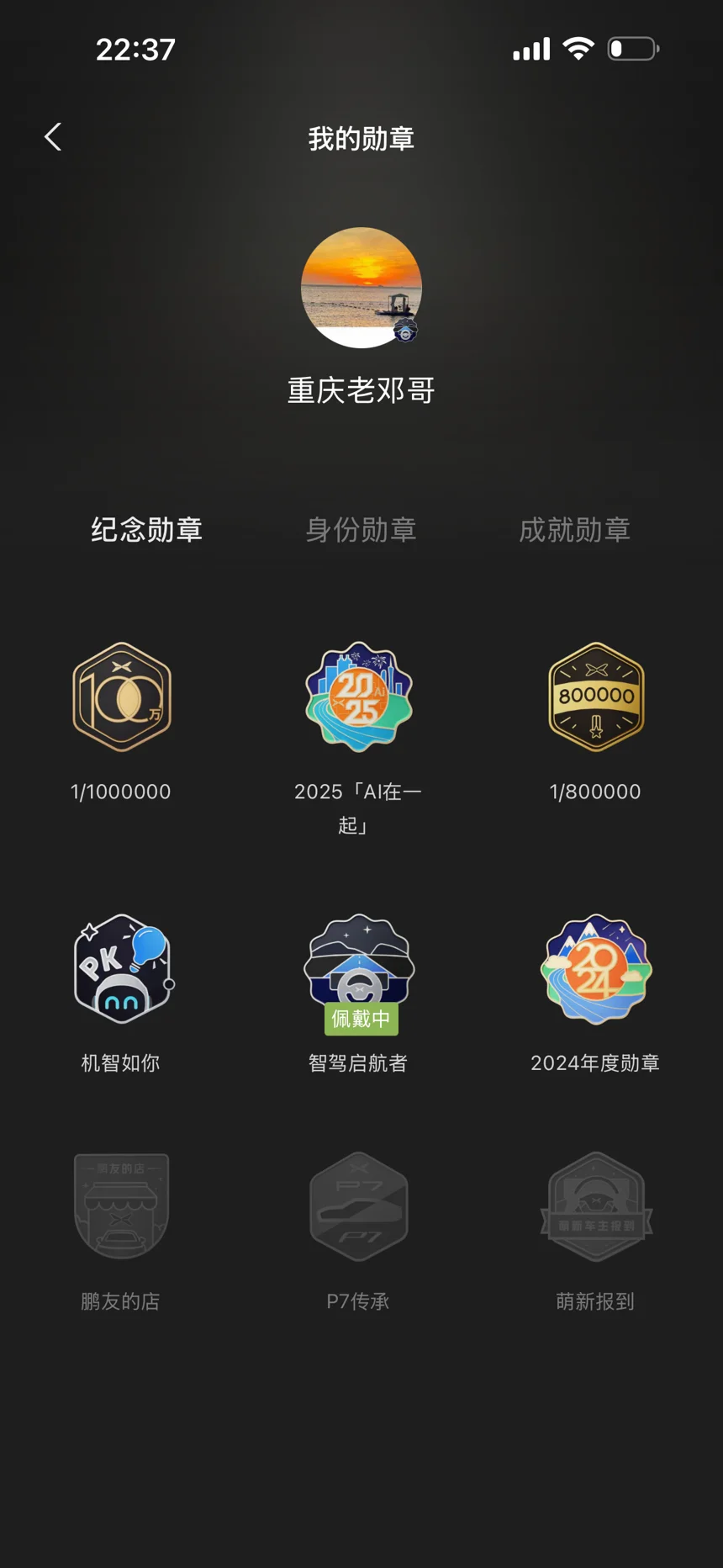 #晒晒我的勋章# 小鹏勋章:智驾、陪伴与充能的旅程印记