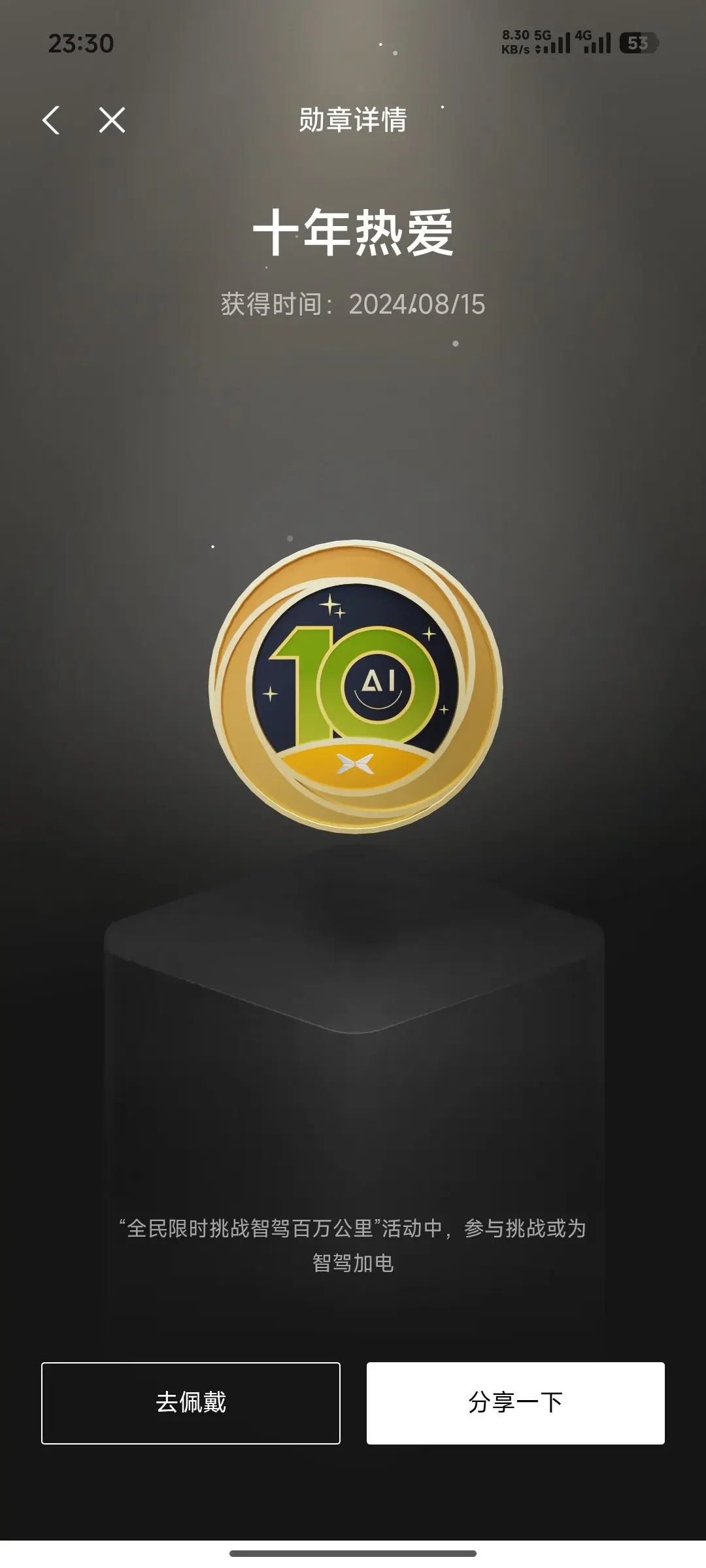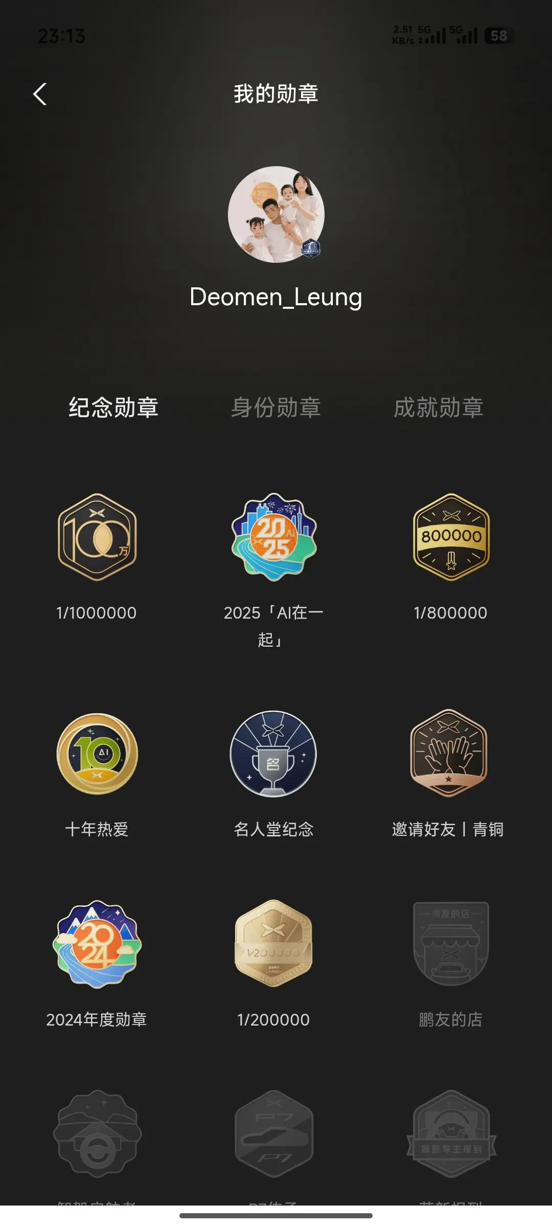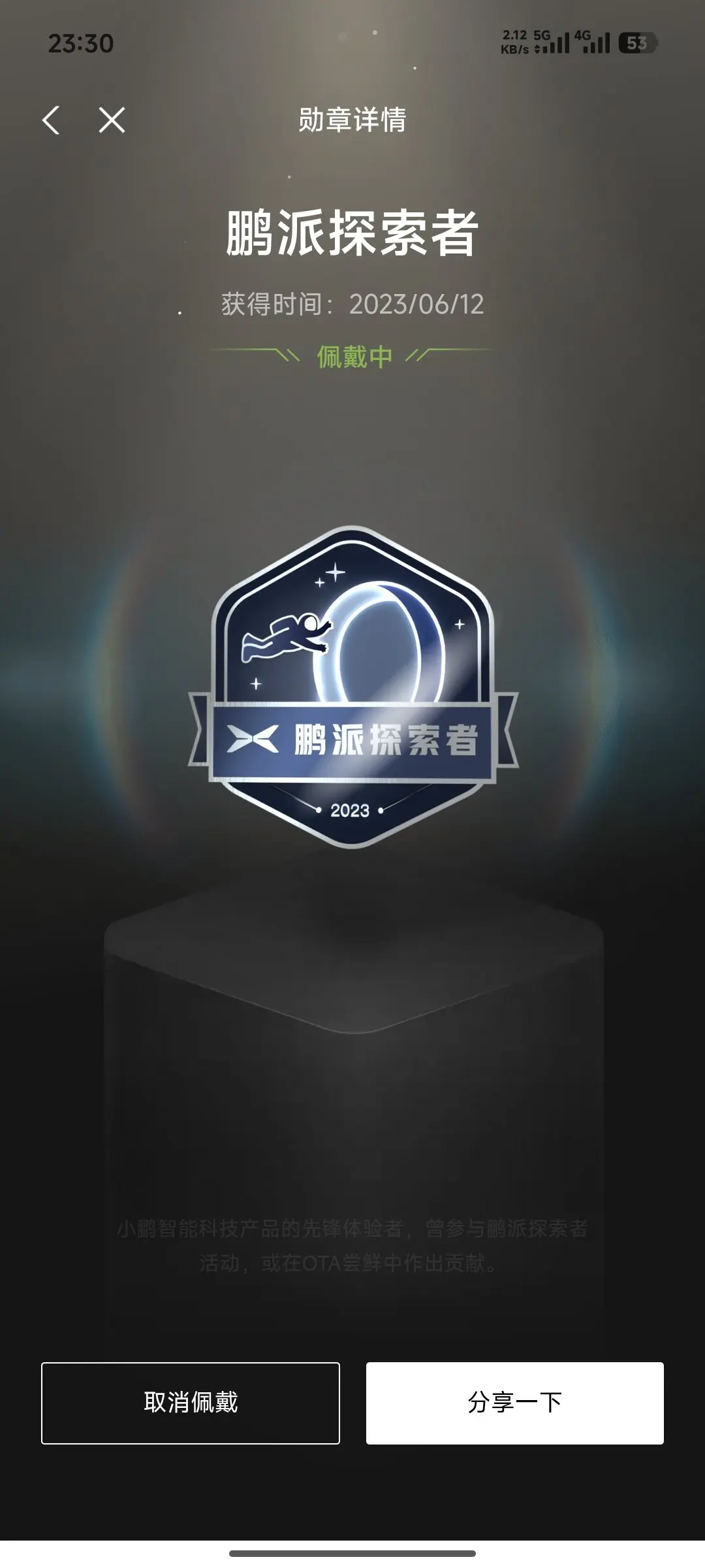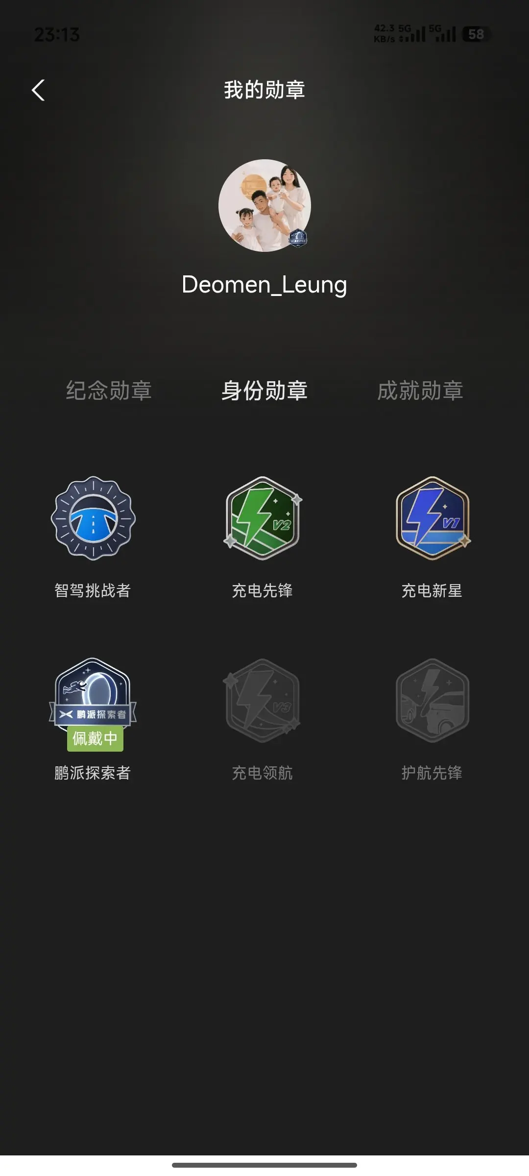 智驾挑战者、充电先锋、充电新星、鹏派探索者(当前佩戴中)