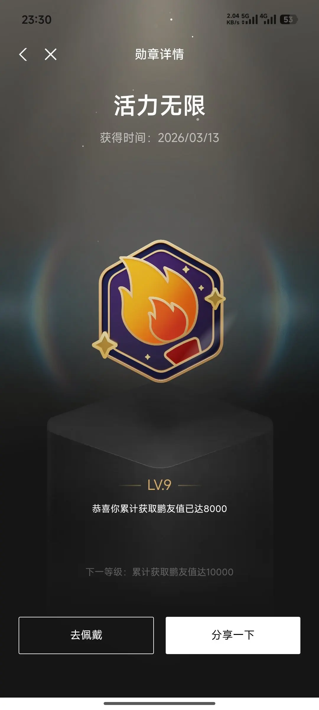 这里面最有成就感的是满级「活力无限LV.9」,它记录了我日常活跃、积极参与社区互动的点滴;而「朝夕与共」则是我和爱车朝夕相伴的最好证明,晃动勋章时,仿佛能看到每一次通勤、每一次家庭出游的画面。