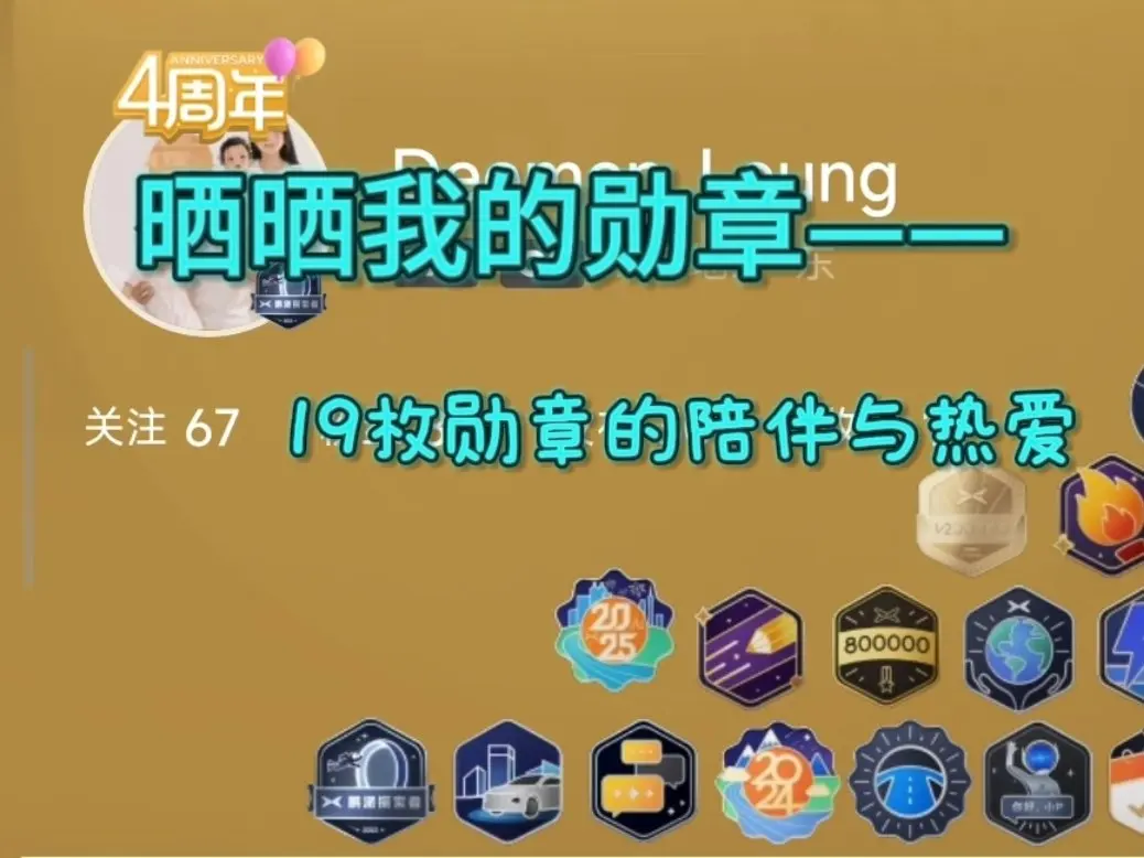 从第一次打开小鹏App,到现在攒齐19枚勋章,每一枚都藏着我和小鹏的专属故事,是用车生活里最珍贵的纪念册📖