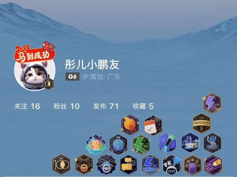 这些勋章不仅是荣誉,更是我与小鹏G6同行的印记,未来还要解锁更多新成就,继续奔赴每一段美好旅程。