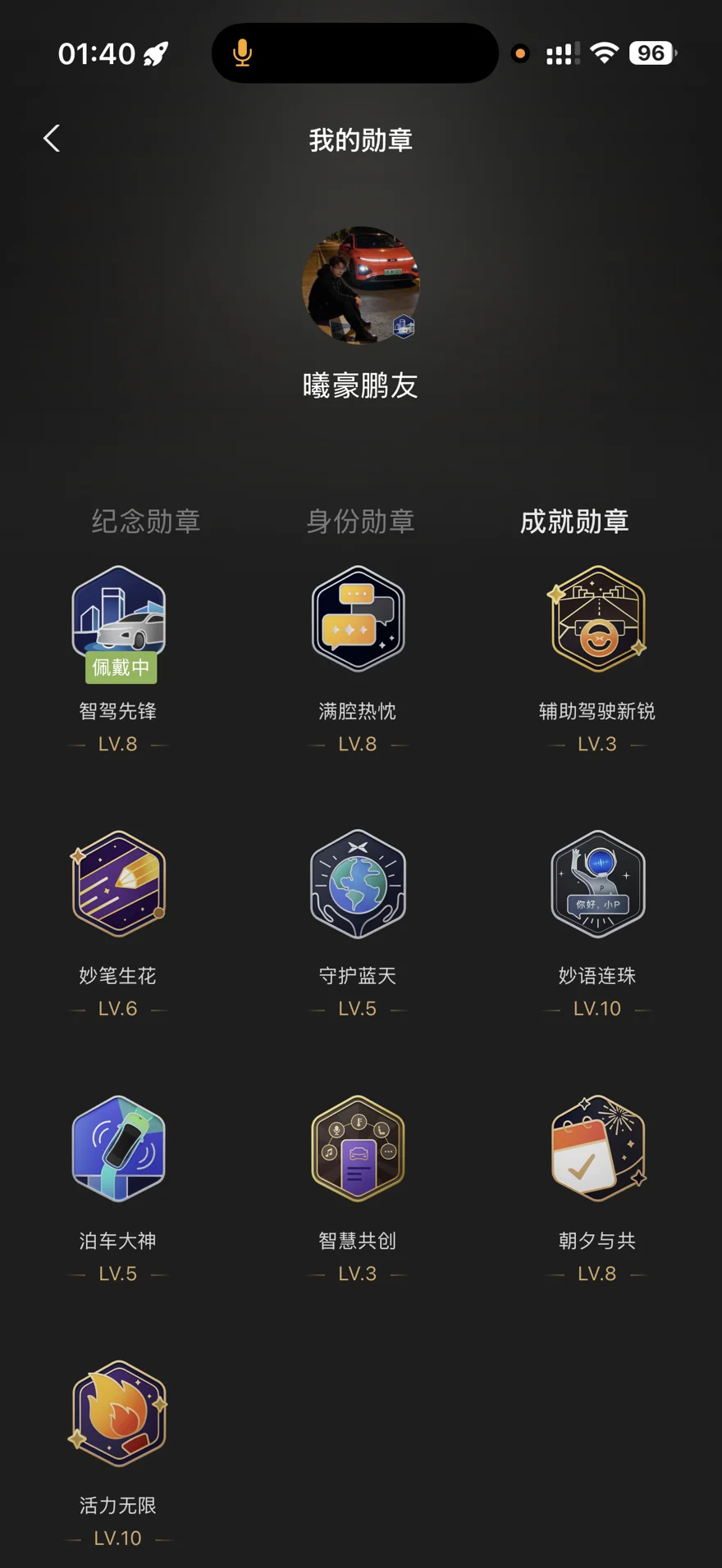 从提车那天起,小鹏APP里的勋章墙就成了我的另一份“成长日记”,不知不觉已经攒下了满满一墙的荣誉。