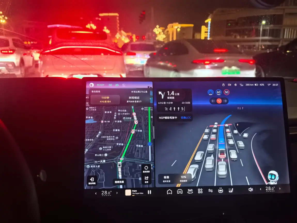 下班推开车门坐进去的那一刻,小P主动询问,帮我设置好回家的导航,智能驾驶辅助开启,我不再需要紧绷神经应对拥堵,只需把手轻轻搭在方向盘上。这是属于我从“打工人”到“我自己”的过渡仪式。从为别人奔忙到为自己而活,不过就是这二三十分钟的车程。有时我会关掉音乐,只听着车内的静谧,让大脑彻底放空;有时我会跟着旋律哼唱几句,把一天积压的情绪慢慢消化。在这个移动的小空间里,我只需要做自己。