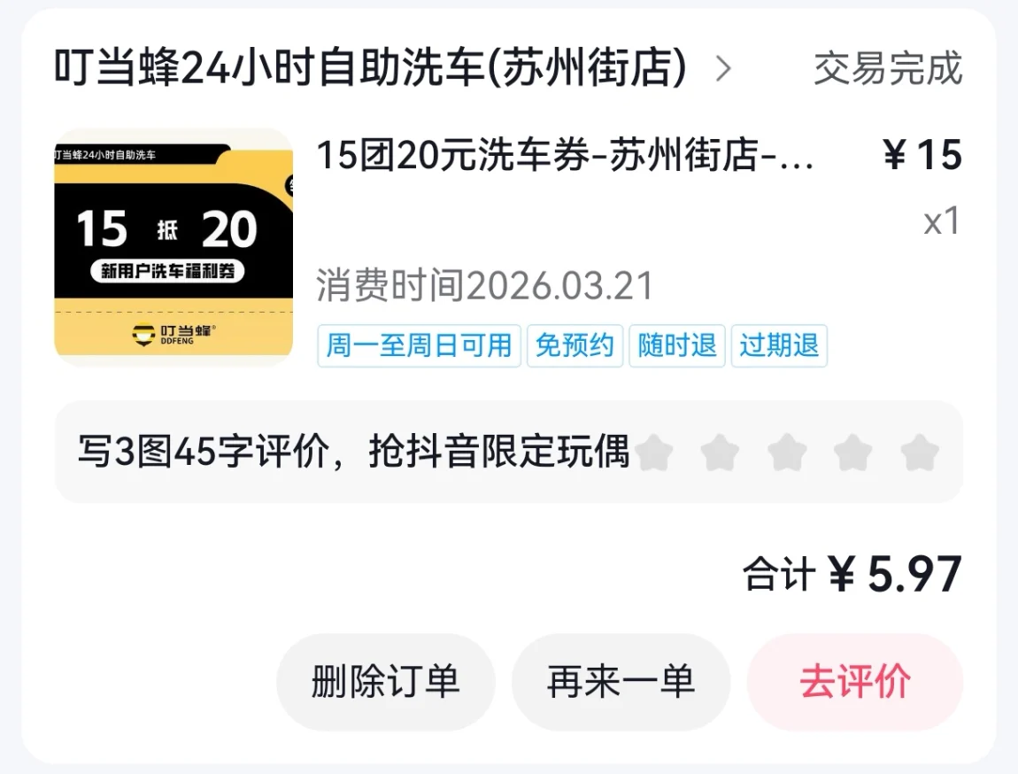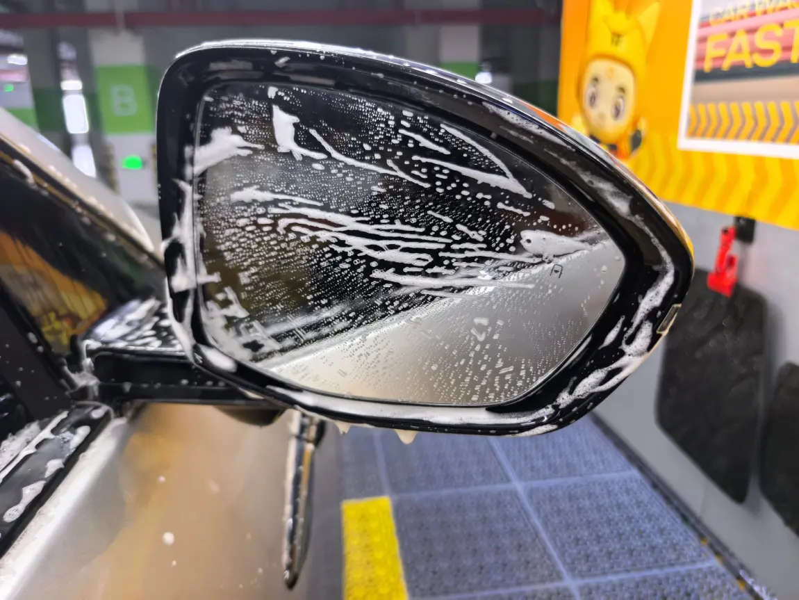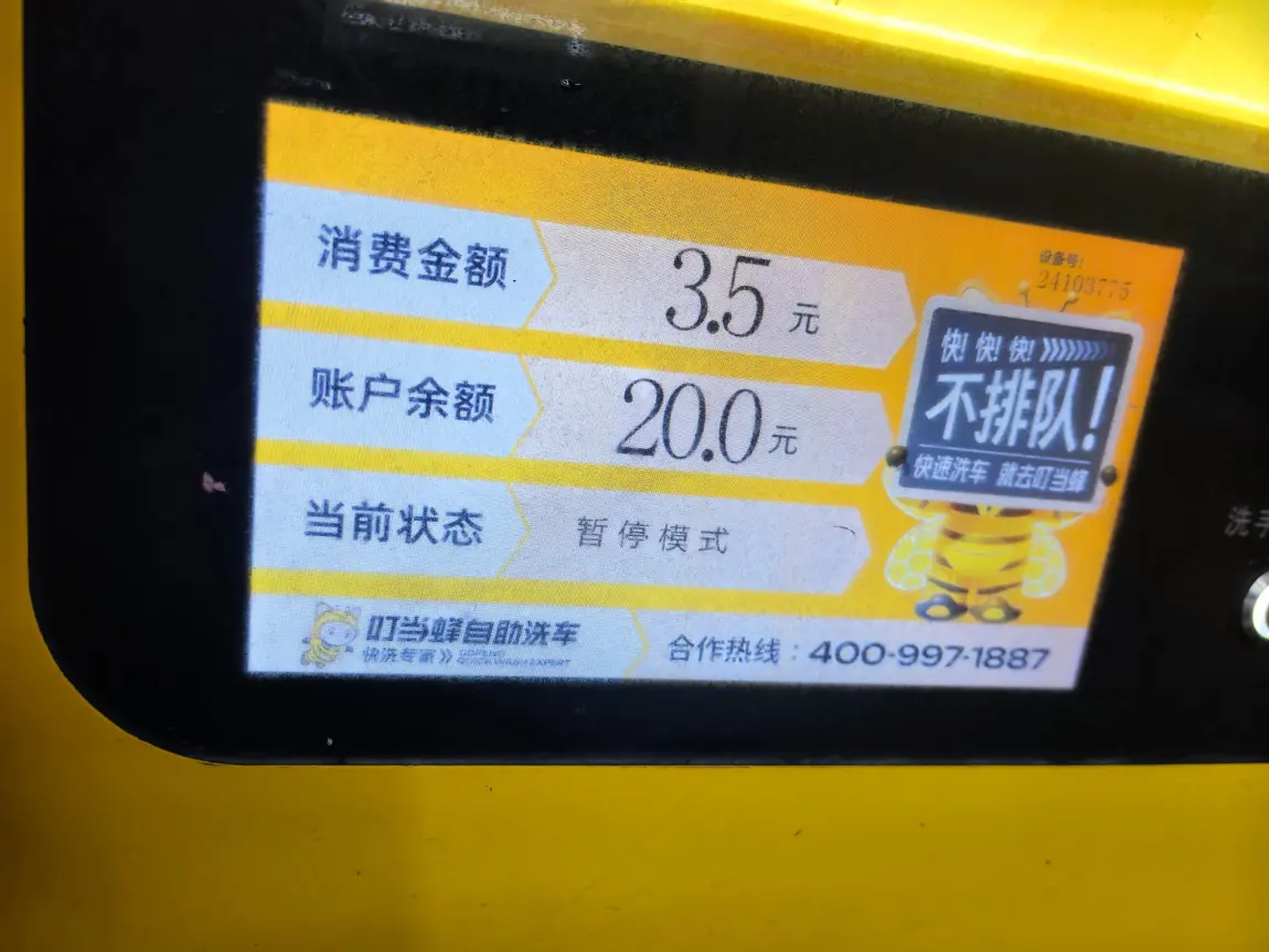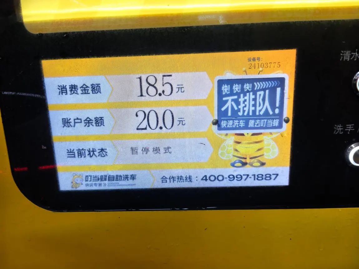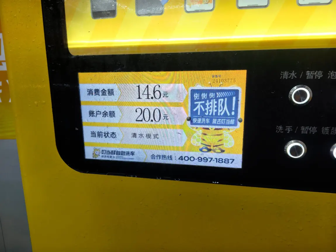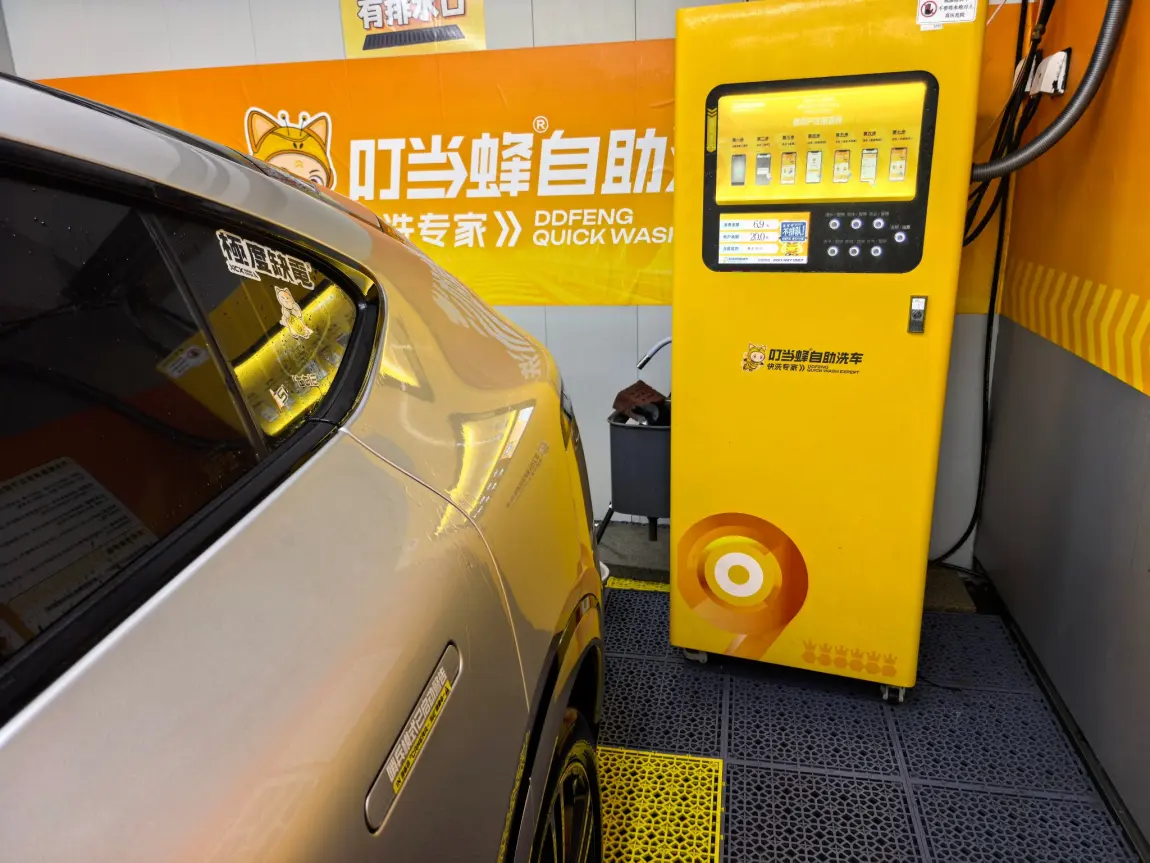 4️⃣ 折腾一圈完成后,就是最舒爽的清水冲洗阶段了。认真地把各处角落里面的泡沫冲个干净,听着隔壁小情侣在争辩是先上后下更干净,还是先下后上更护车漆的时候。还是贴了车衣更省心,直接一通乱呲就行🧐🧐截止至此,仅仅计费6.9元!