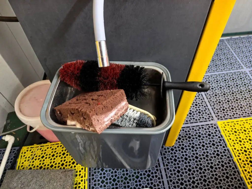 不到6元的初次洗车体验,较为舒适。而且花了不少心思在洗手池这里充当了工具清洗区,一般这里就节俭到给了个长刷与拖把!