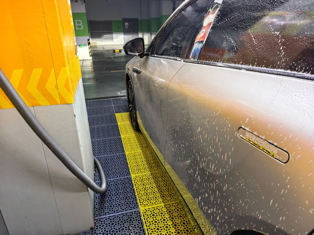 7️⃣ 补充一点,到达洗车区,最推荐的就是先整理车内,把脚垫之类的都先挂起来,在洗车时一起用泡沫和清水冲一冲,再用免费的甩干机去去水!