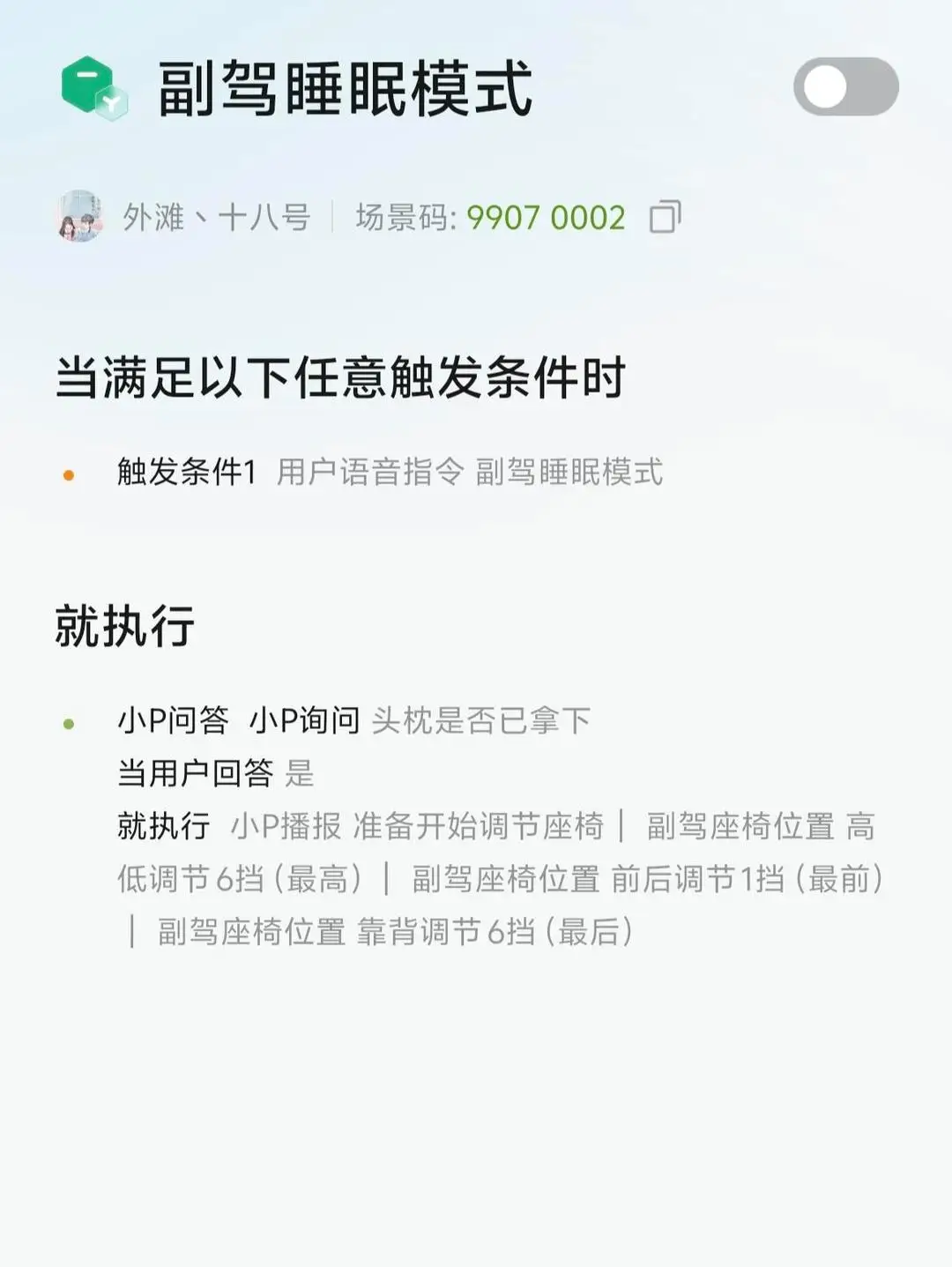 每次想在车里休息睡觉的时候,我就用这两个场景感觉非常方便