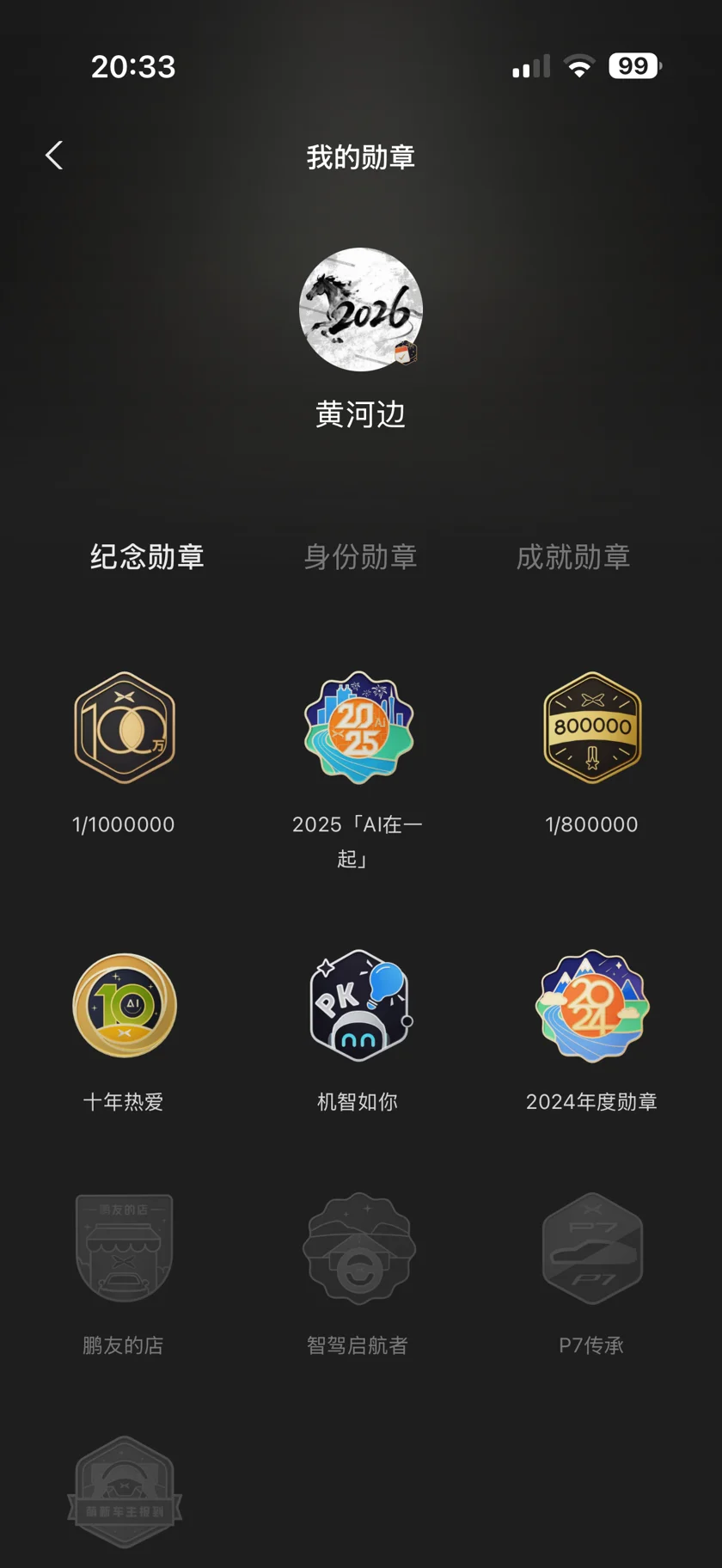 #晒晒我的勋章# 目前为止,一共有19枚勋章,买了小鹏X9马上两年了,两年行驶了很多地方,有几个勋章使用了很长时间。比如百万分之一,2025AI在一起等等。