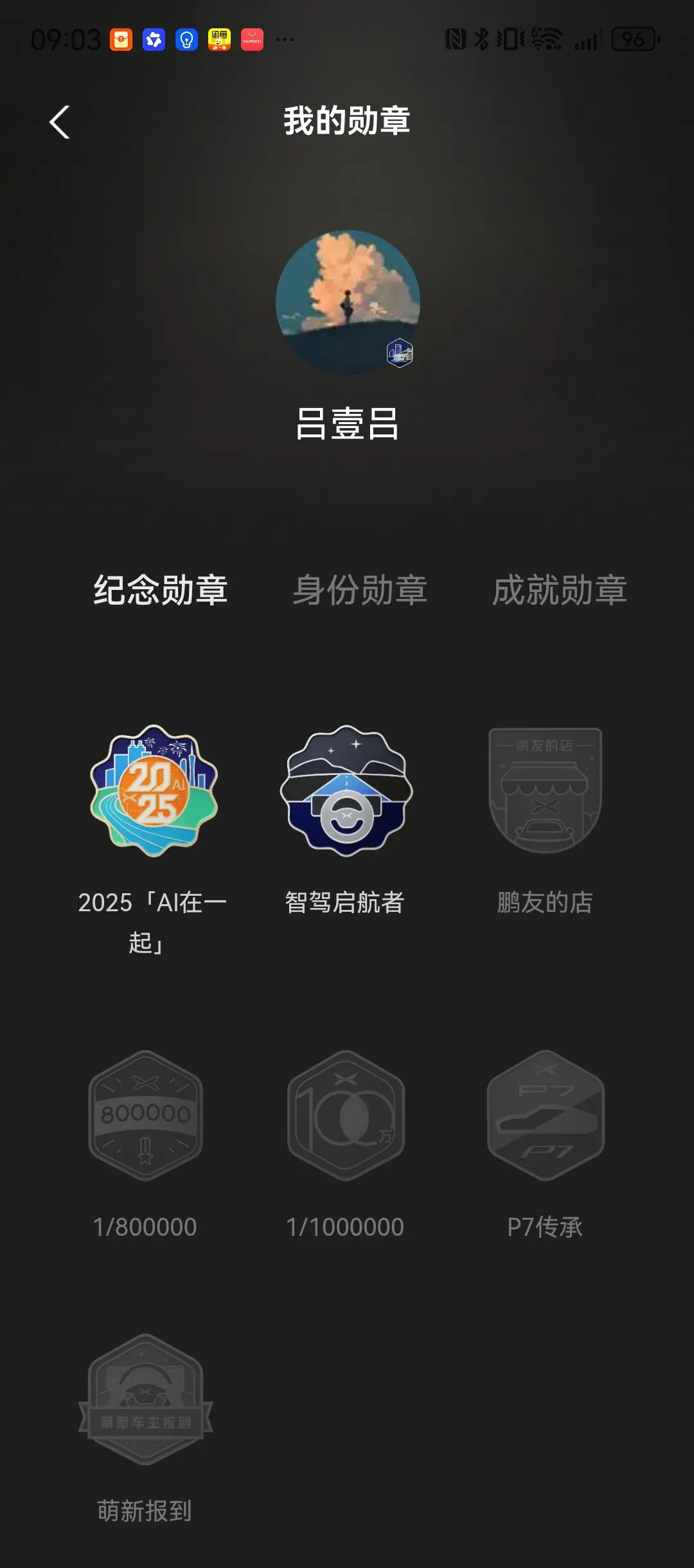 最让我心动的还是「智驾先锋」,它代表着我对高阶智驾的探索与热爱;也遗憾错过了一些限定勋章,真心希望未来能有返场机会,让更多鹏友能补齐自己的勋章墙。