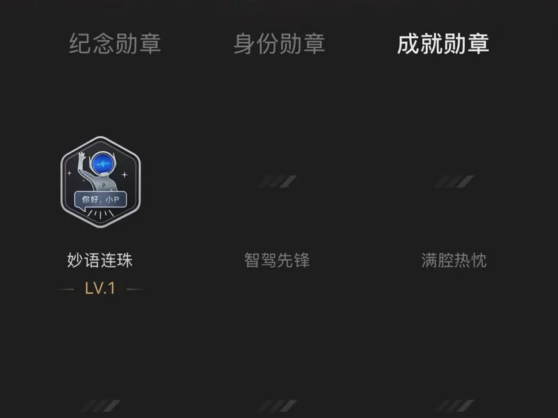 终于解锁了我的第一枚小鹏勋章——「妙语连珠」!这是和小P高频互动、畅快交流的见证~每次和它语音聊天、下达指令都超顺畅,慢慢攒下这枚勋章真的很有成就感,以后也要继续和小P“唠嗑”解锁更多勋章~🚗✨