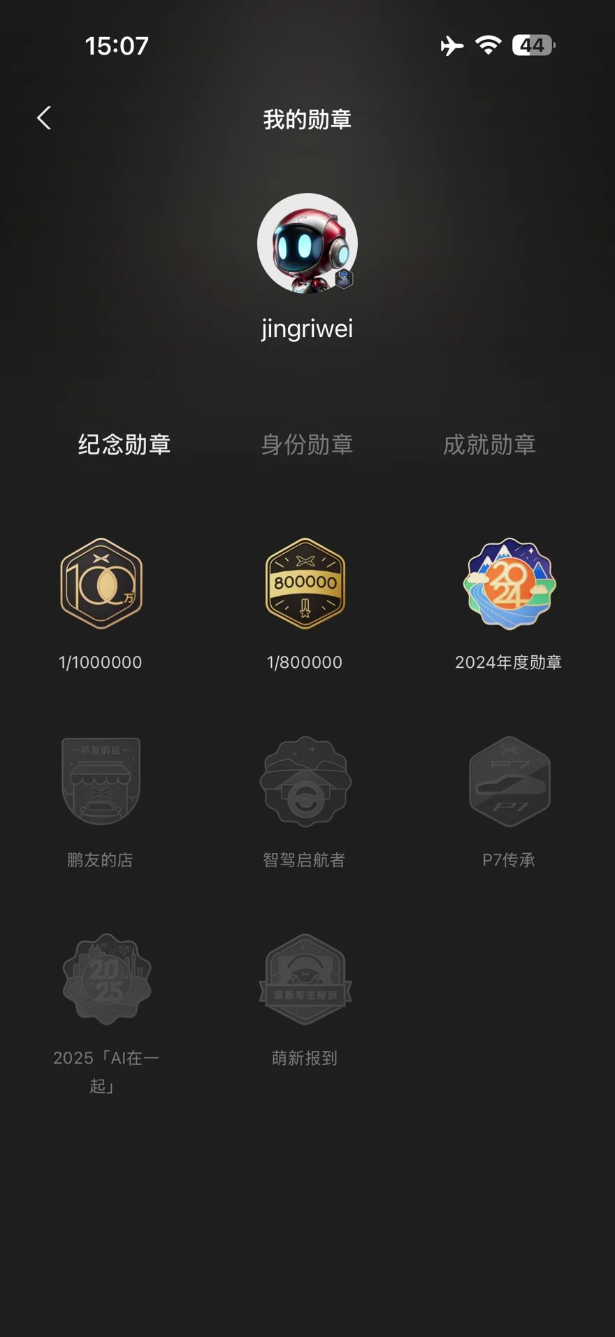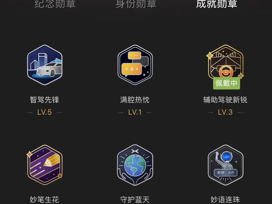 打开小鹏APP的勋章页面,一块块徽章就像我出行路上的里程碑,每一枚都刻着专属的故事,其中几枚更是让我格外珍视。