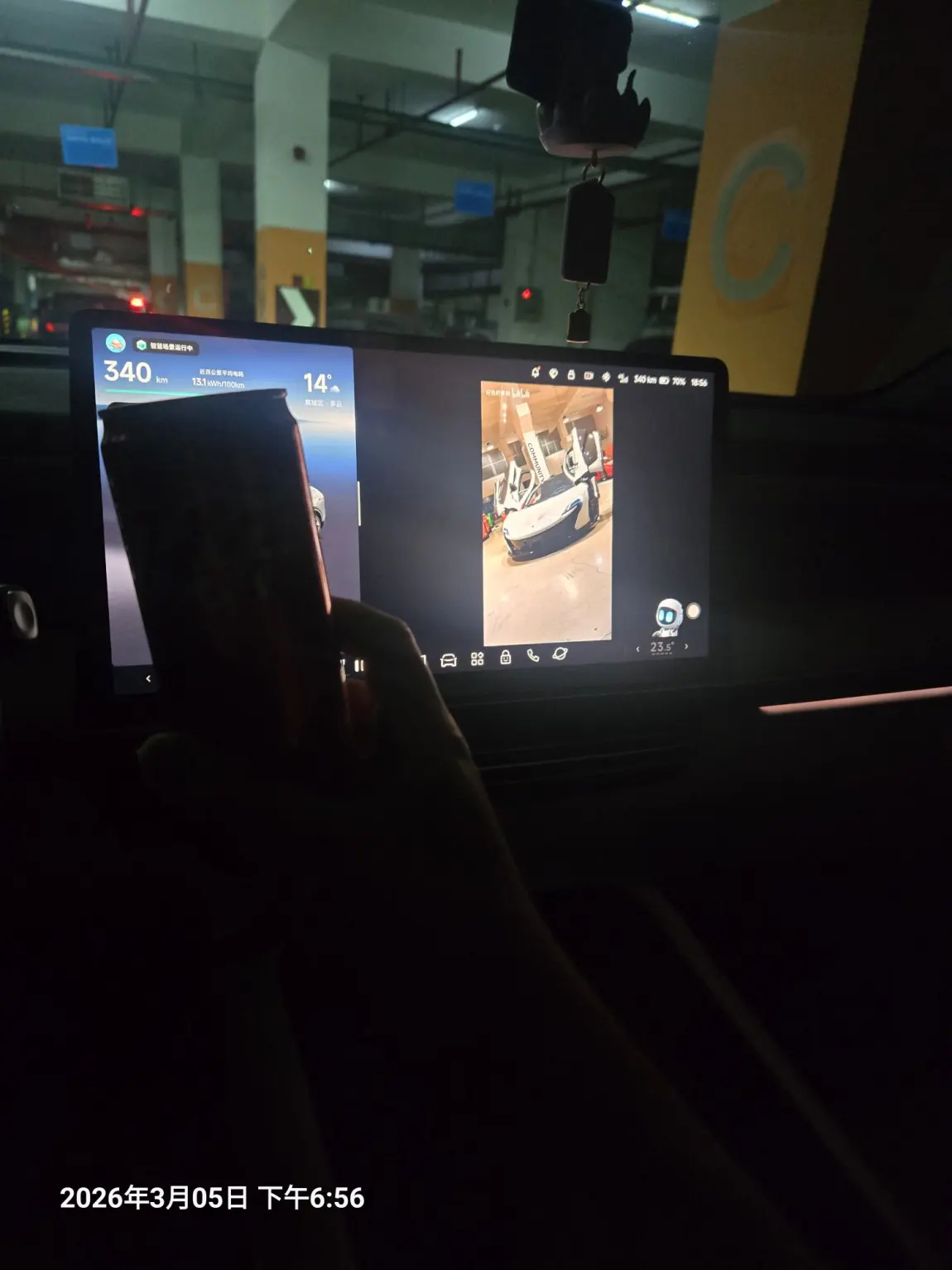 在车里坐一会,开个音乐,玩玩手机,看看视频,