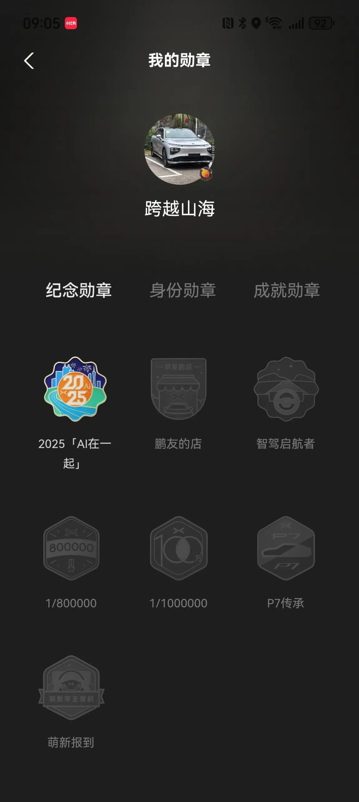 目前只解锁了「2025「AI在一起」」这一枚纪念勋章,是参与小鹏AI相关活动获得的。