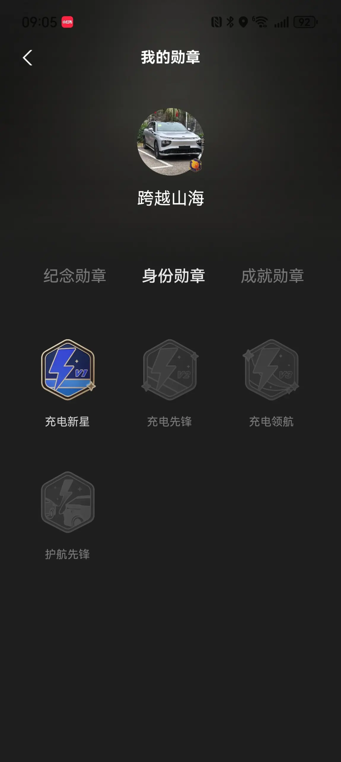 - 「守护蓝天」(LV.1):作为新能源车主,这枚勋章提醒着我选择绿色出行的初心。