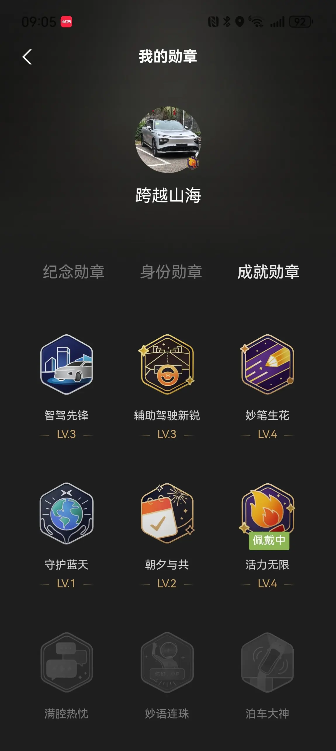 作为一名小鹏G9车主,从提车那天起,我就被App里精致的勋章系统深深吸引。每一枚勋章都像一个小小的里程碑,记录着我与小鹏相伴的点滴时光。今天就来晒晒我的勋章收藏,聊聊那些背后的故事。