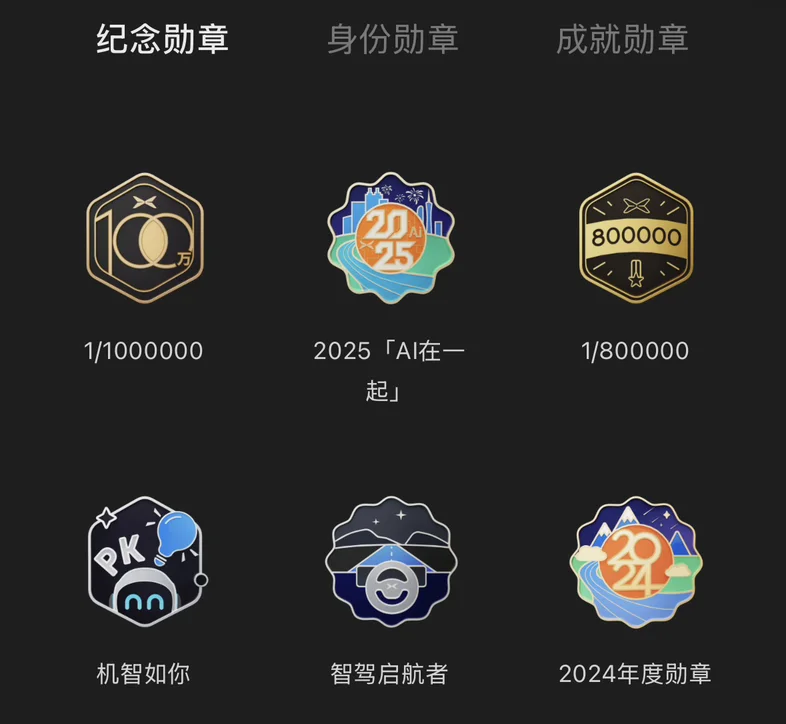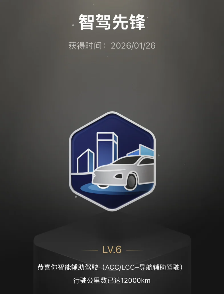 给我记忆最深的就是智驾先锋这个勋章了,因为我的智驾里程已经是我总里程的 40% 啦,完全没有想到,我居然可以开到这么多里程。
