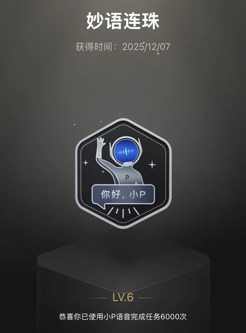 另外妙语连珠也是一个我非常喜欢的勋章,毕竟每天都在和小P 聊天,都聊出感情来了。