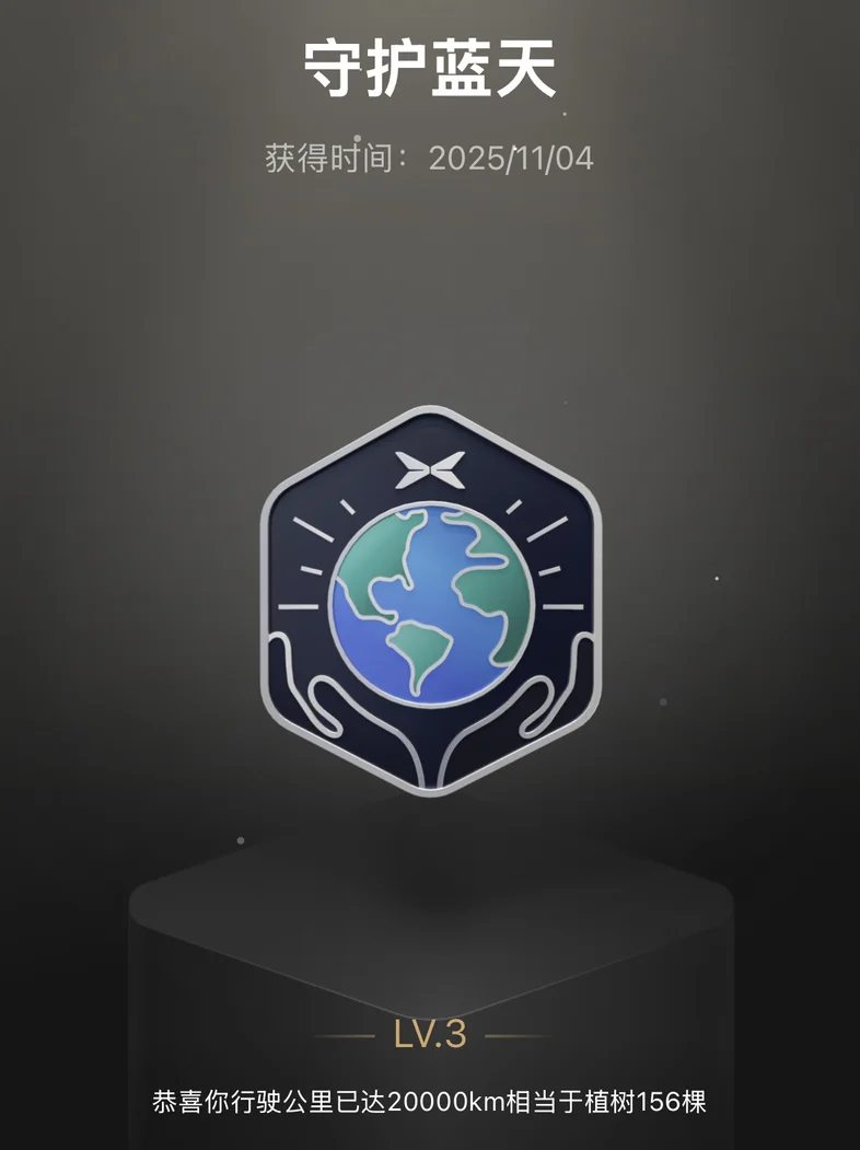 最喜欢的一个勋章就是守护蓝天,也是我目前佩戴的勋章,这个勋章和新能源太配了,为环保付出一份力也是我们每一个人的愿景。