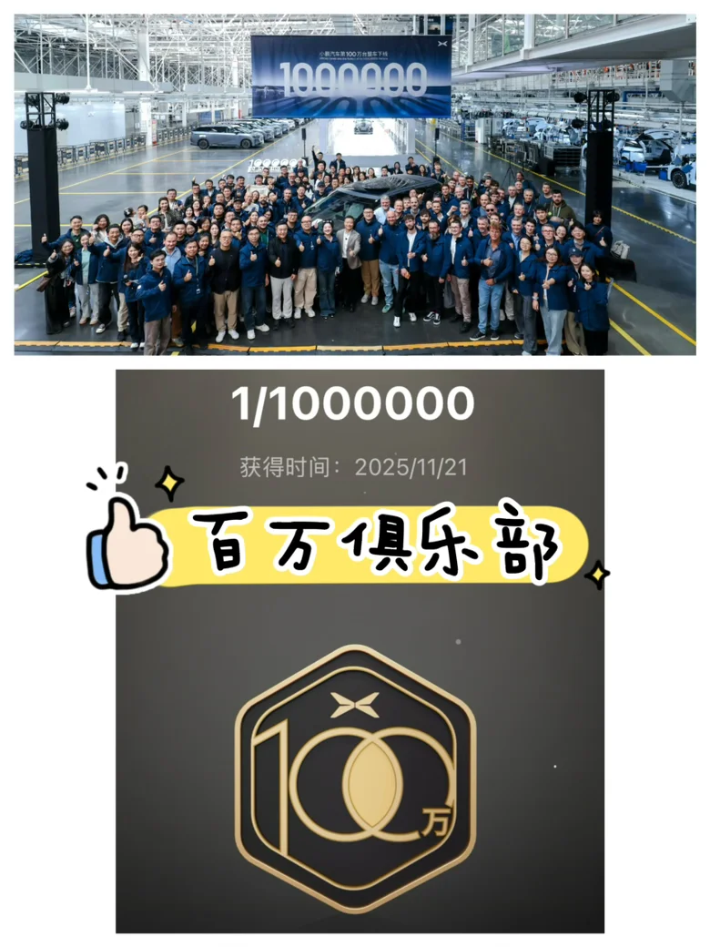 见证了小鹏 第 100 万台车的下线,第50万到100万仅用14个月,小鹏太厉害了!绝对的逆风翻盘。