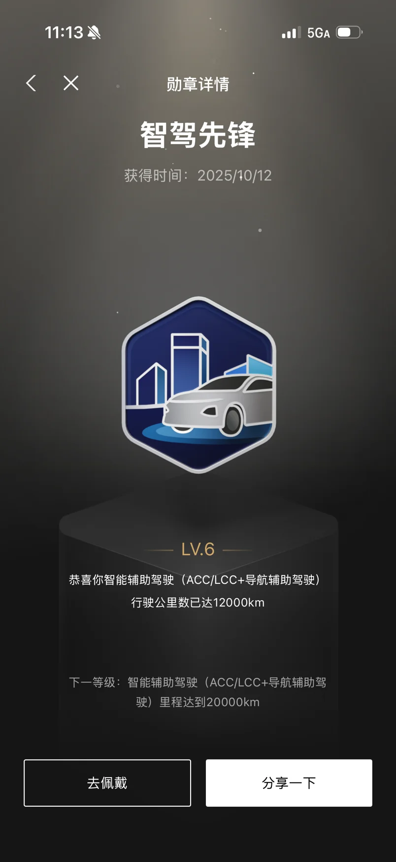 “智驾先锋LV.6”记录了我12000公里的辅助驾驶里程,从ACC到LCC,每一公里都是对智驾技术的信任。“守护蓝天LV.6”则见证了我低碳出行的坚持,绿色用车的每一天都在为环保助力。“智驾挑战者”勋章,更是我不断探索智驾边界的勇气证明。