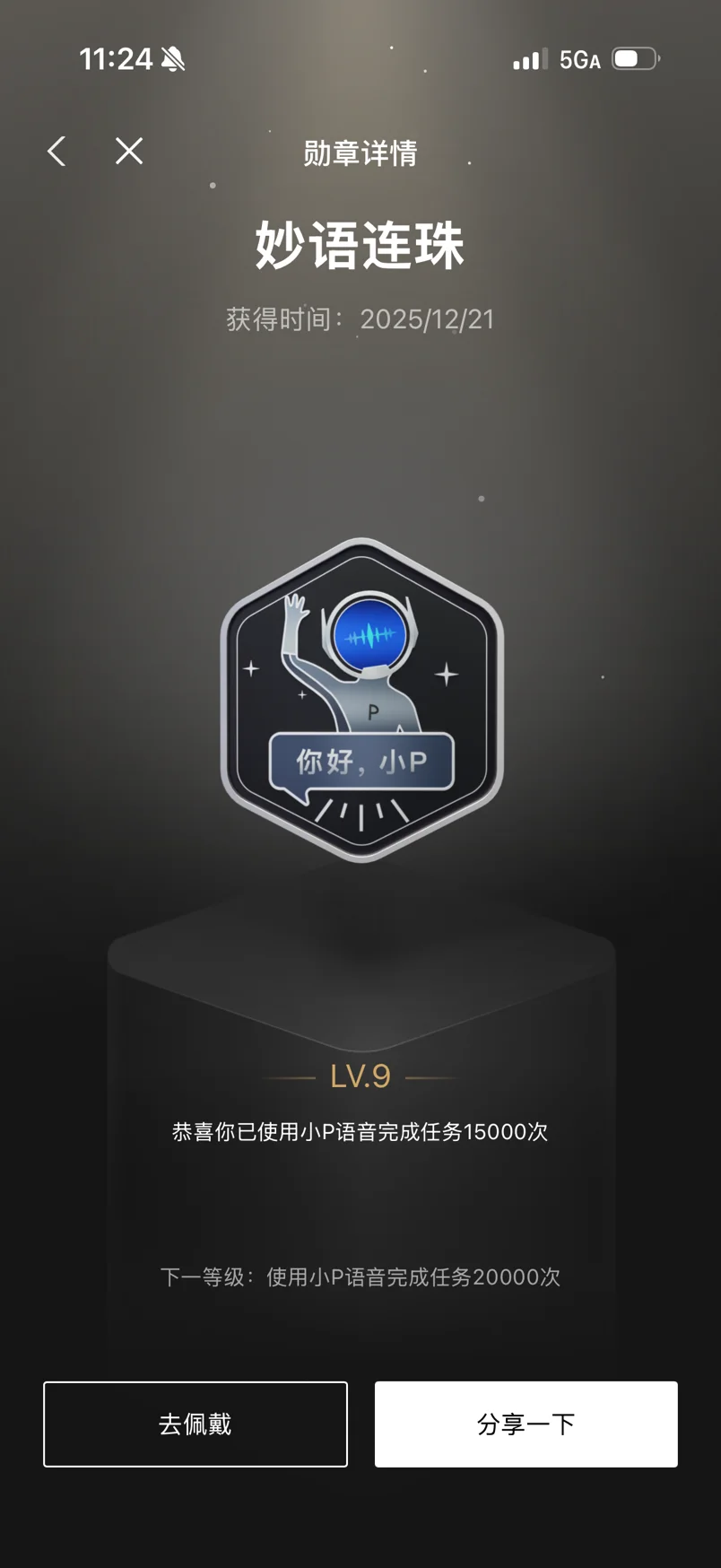 “妙语连珠LV.9”是我和小P语音互动超8000次的见证,从导航点歌到闲聊解闷,小P早已成为我出行路上的贴心伙伴。“满腔热忱LV.4”和“活力无限LV.6”则是我在社区活跃的证明,3000鹏友值的积累,藏着我和车友们交流分享的日常热爱。