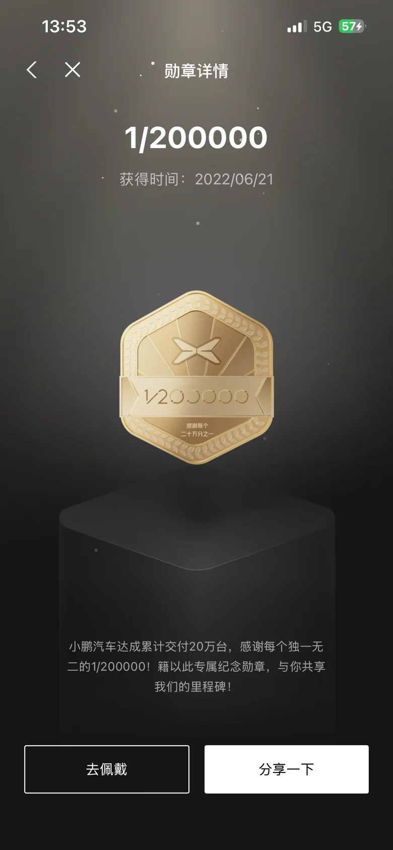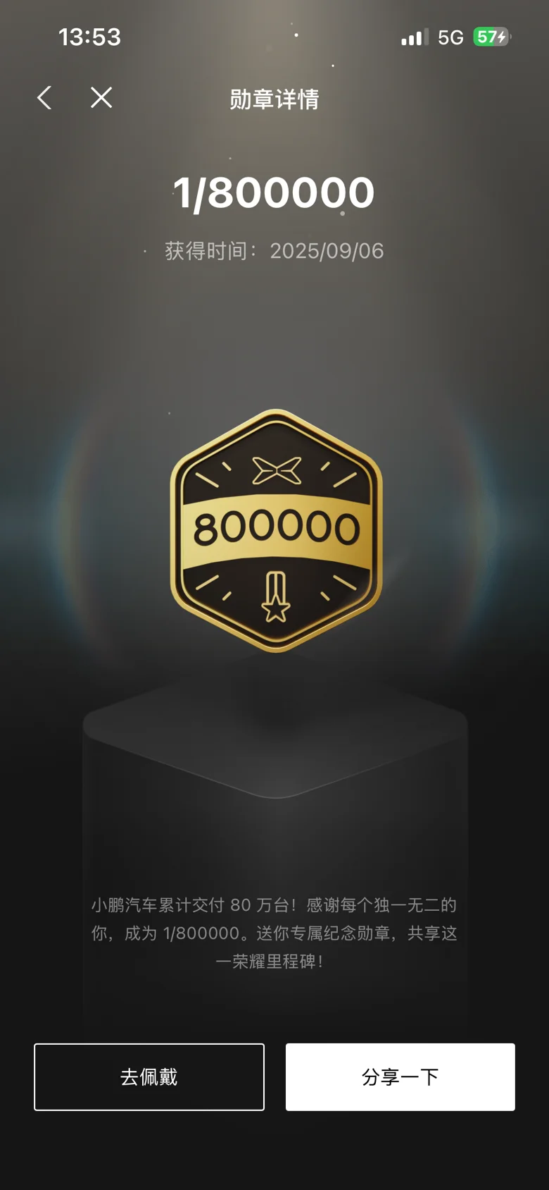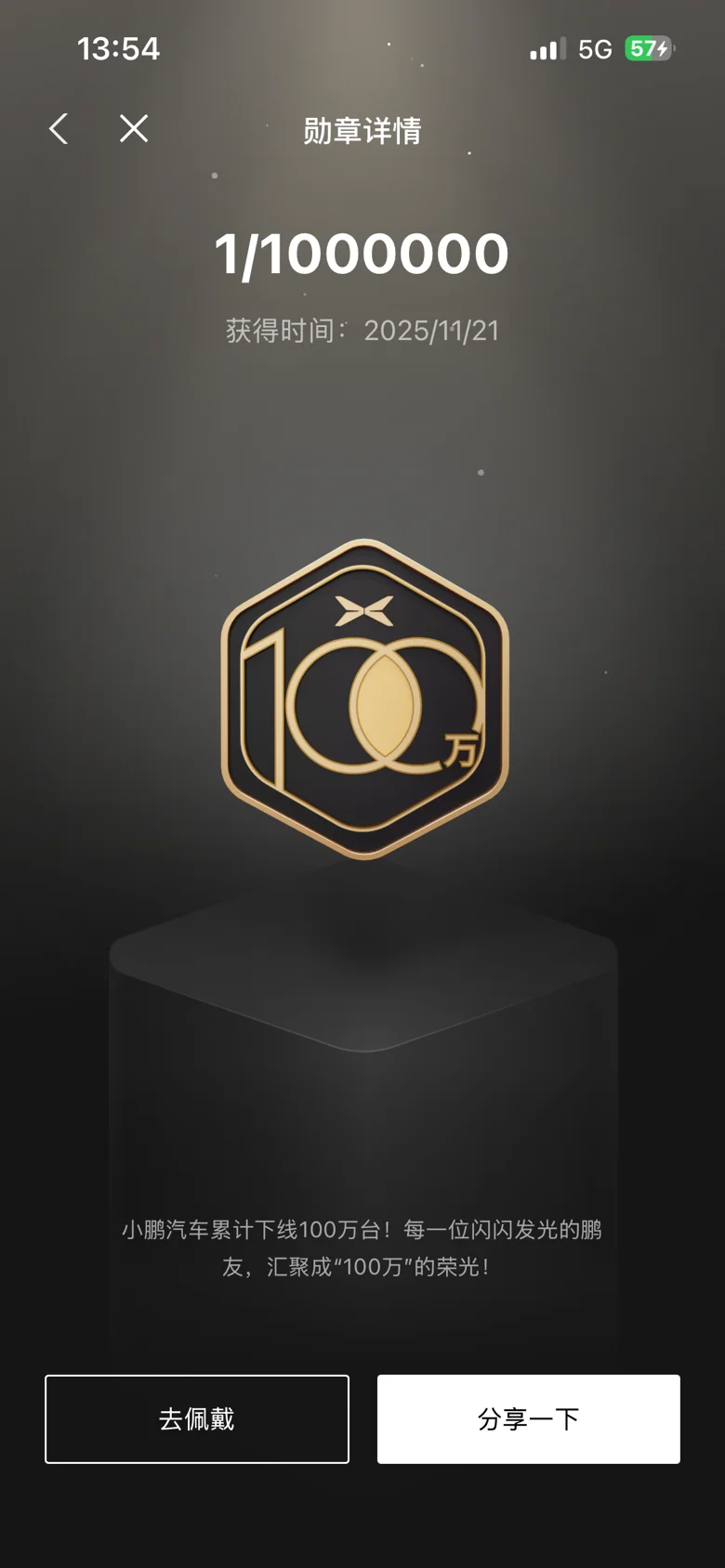 但是印象最深的还是20万,80万和100万纪念勋章。当时20万勋章是22年6月获得的,感觉攒了好久才攒到20万用户,同时还发了纪念T。80万和100万都是去年获得的。也算是鹏子的一个里程碑吧!希望下一个100万也快些到来!加油吧小鹏!