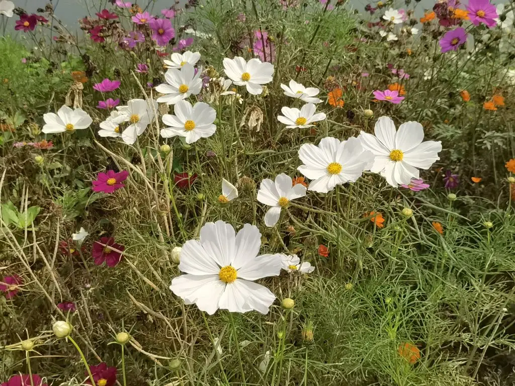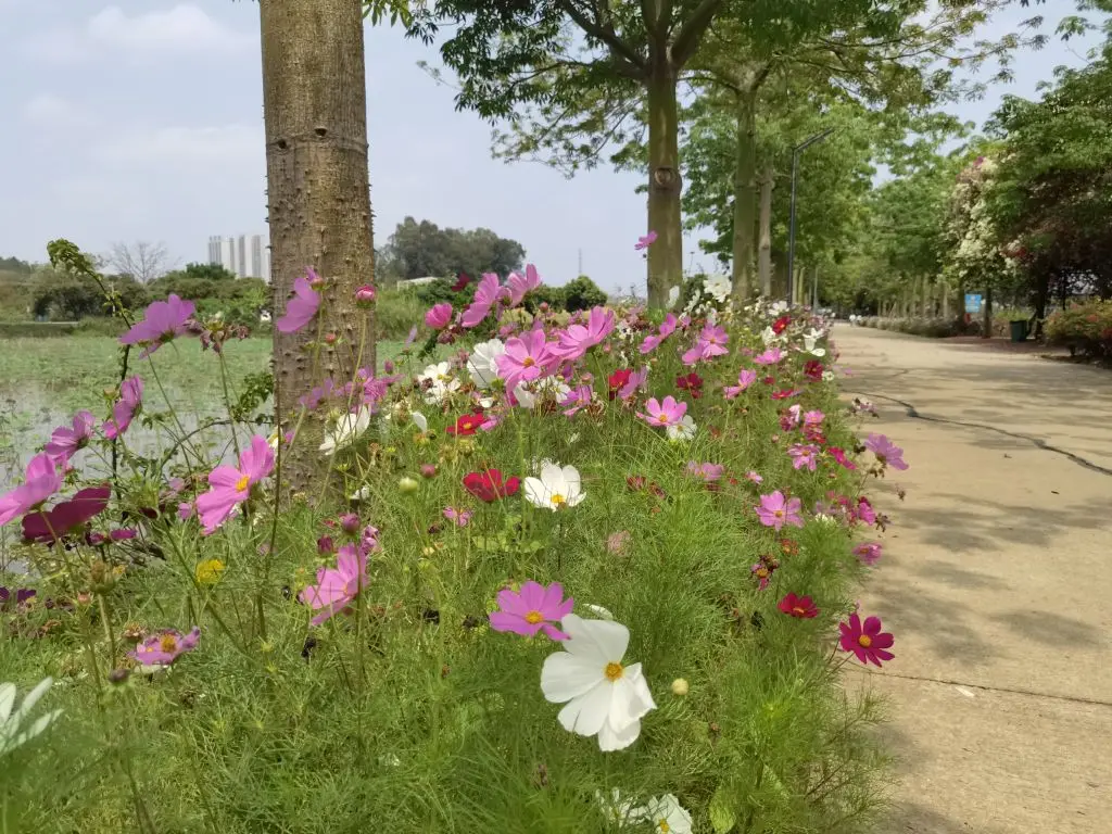 1、格桑花——最先闯入眼帘的是格桑花田,粉的、白的、橙的、紫的花朵在微风里轻轻摇曳,纤细的茎秆托着层层叠叠的花瓣,像一群翩翩起舞的蝴蝶。沿着步道慢慢走,脚下是细碎的光影,身边是随风摆动的花浪,孩子在花丛里追着蝴蝶跑,笑声混着花香,成了春日里最动听的旋律。