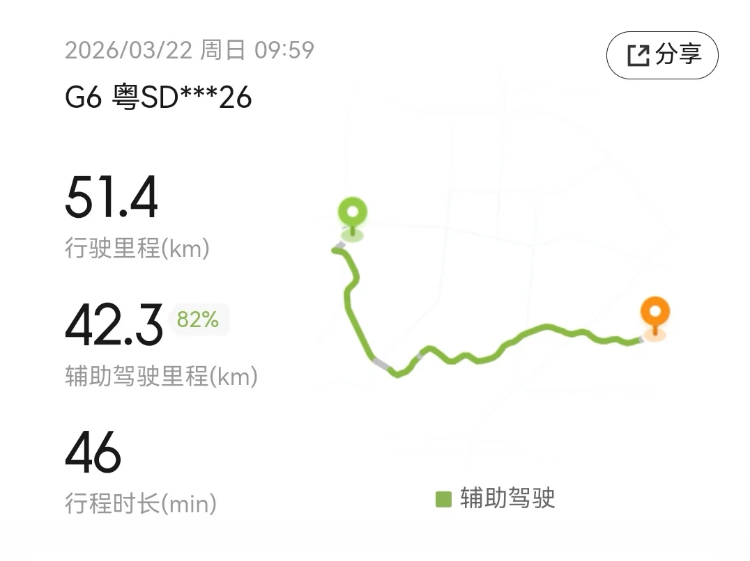 坐进车里,唤醒小P设置好导航,城市NGP和高速NGP全程在线,从市区到高速再到下站口,几乎不用我过多操心。行程记录下来,辅助驾驶占比分别达到了82%,平均车速73.9km,高速上的智驾体验既省心又高效,让我能把更多精力留给副驾的家人和窗外的风景。