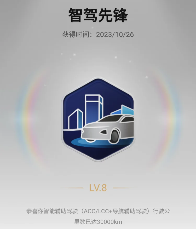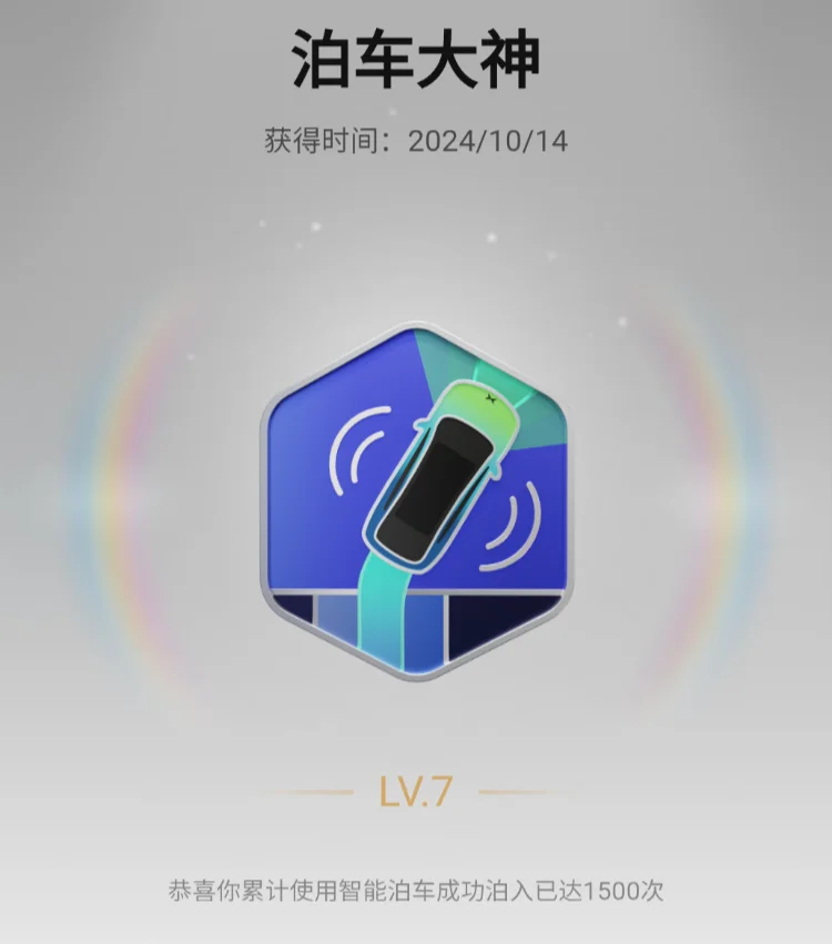 在这么多勋章里,对我意义最重大的,绝对是【泊车大神】和【智驾先锋】。这背后还有一个关于“新手蜕变”的小故事。