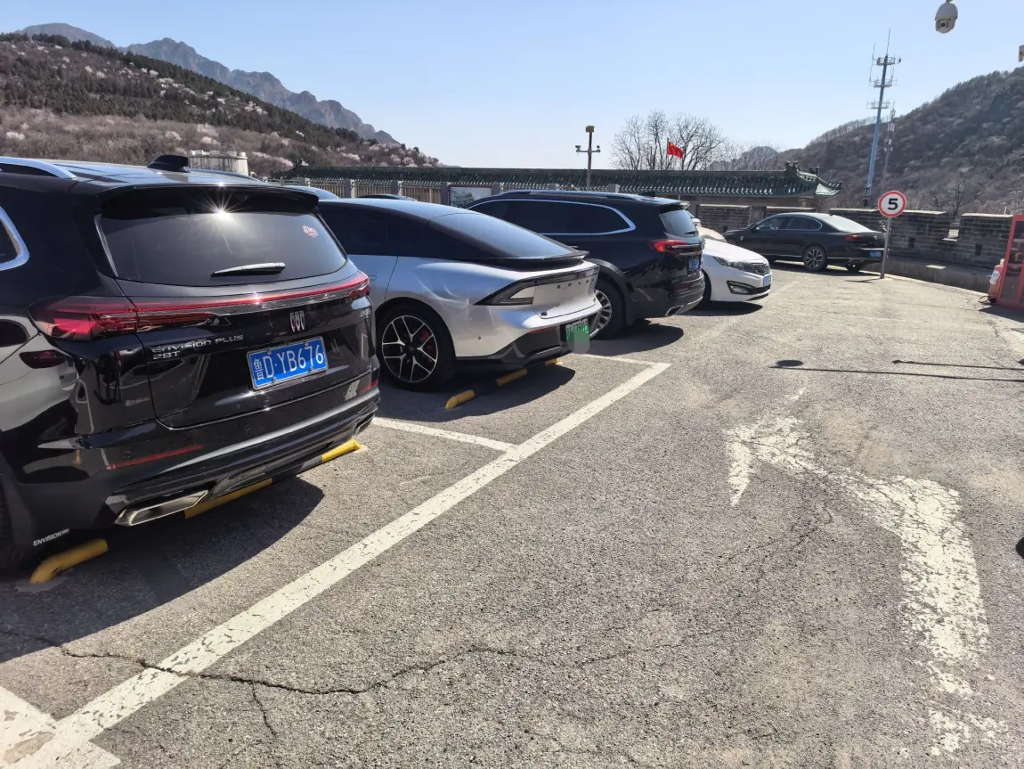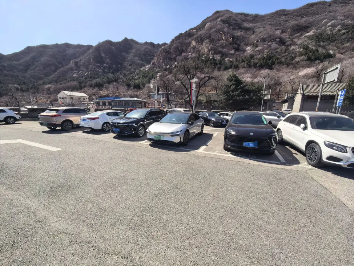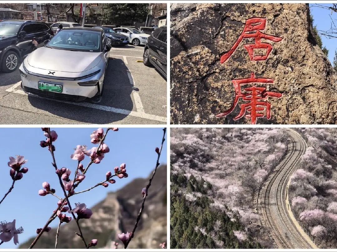 抵达居庸关二号停车场,放眼望去,远山渐染粉色,桃花次第绽放。不忍心让小P独自等候,特意找了安静角落开启哨兵模式,让他默默等待,等待即为守护,小鹏汽车的守护给我们带来很大的安心。