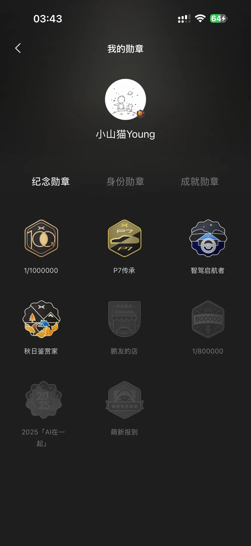 #晒晒我的勋章# 看到这个话题我突然想到要去看看我有多少徽章,我依稀记得第一次提了G6,到现在置换了新P7,我还记得曾经账号上绑定了每个车型到测试车,每一个都是对我的激励,仿佛在说,来,带我回家。