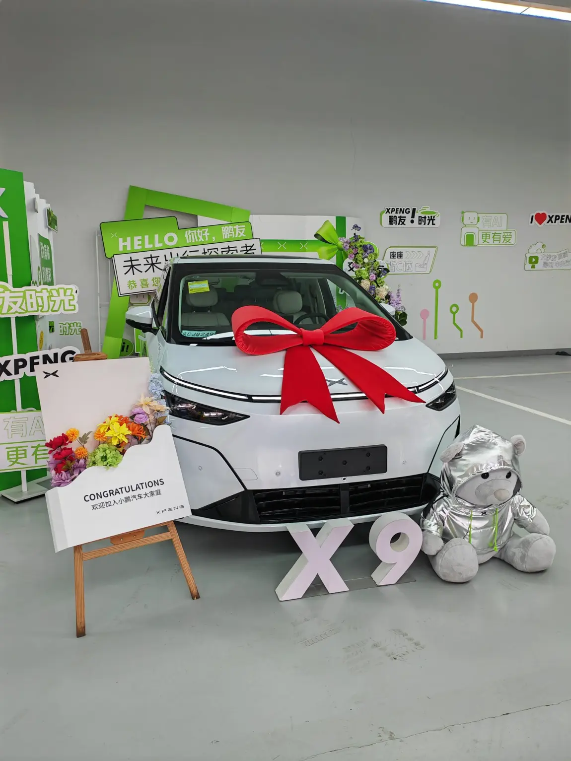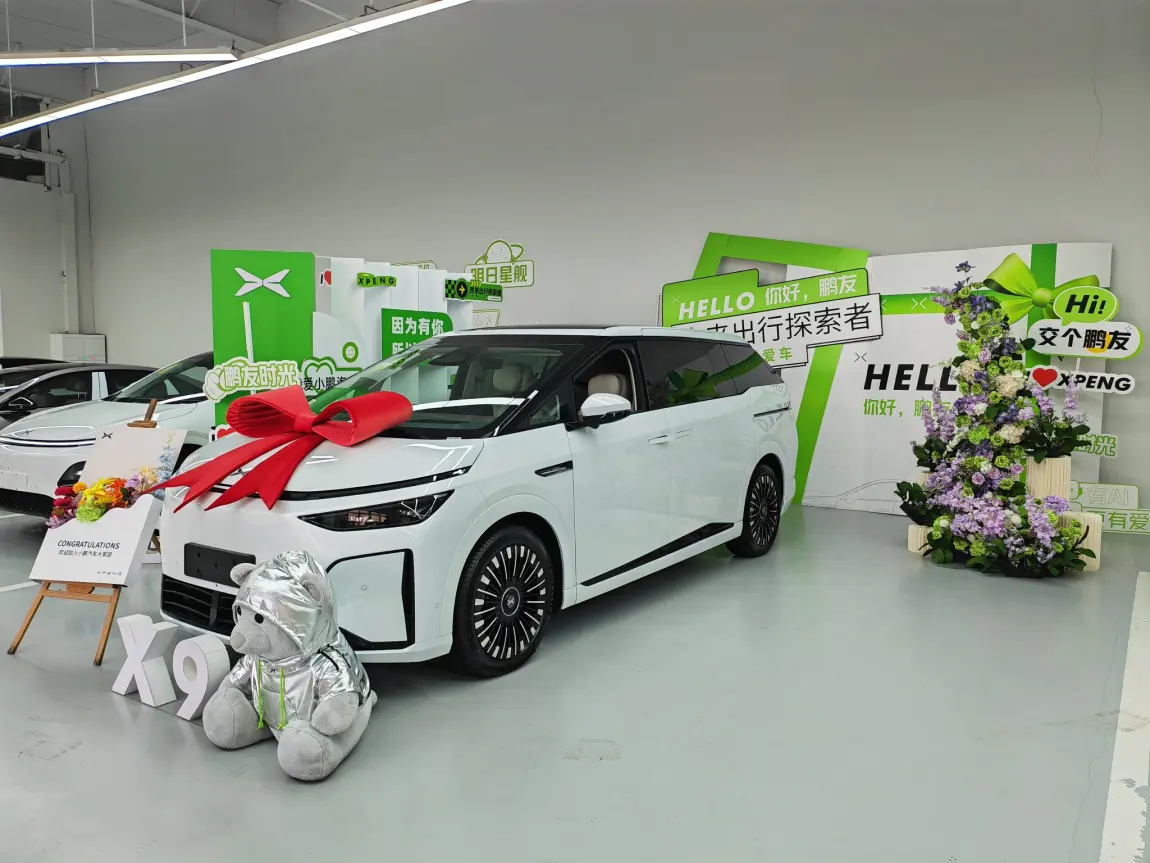 #我的提车作业# 3月23日,晴,运势:大吉!因为心心念念的X9终于提车啦!自从家里有了老二以后,一直就想着把家里的suv换成mpv,2023年时候,小鹏第一款X9刚发布我就陆陆续续去看了很多次,冰箱、彩电、大沙发固然吸引人,但是最让我心动的是后轮转向的功能,确实是让我对比了很多其他品牌MPV以后最打动我的,怎奈当时我的比亚迪宋PRO刚买三年,当时X9接近40W的价格还是让囊中羞涩的我退却了。之后的这几年各种不同品牌的MPV也陆陆续续上市,X9也经历了各种升级蜕变,直到2026年3月2日,我在上班时候偷偷看了小鹏的发布会,说实话,VLA2.0对我的吸引力太大了!!而且2026纯电款X9又增加了之前一直没有的HUD,还有3颗图灵芯片,2000多的算力,这些都直接击溃了我的摇摆不定!换车!!当天晚上就盲交了定金,最后2000抵了7000车款,还比较给力!一开始下订单的时候什么选装都没要,就是单独一个650ultra,结果试驾完又被玫红座椅和悬浮龙骨种草,改配置又增加了1万多,还好最后办了0首付3年免息贷款,压力小了很多。