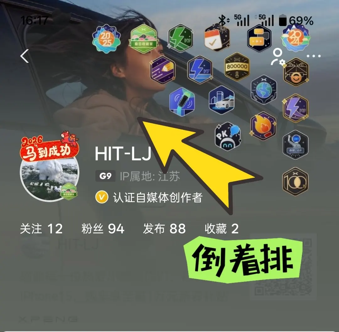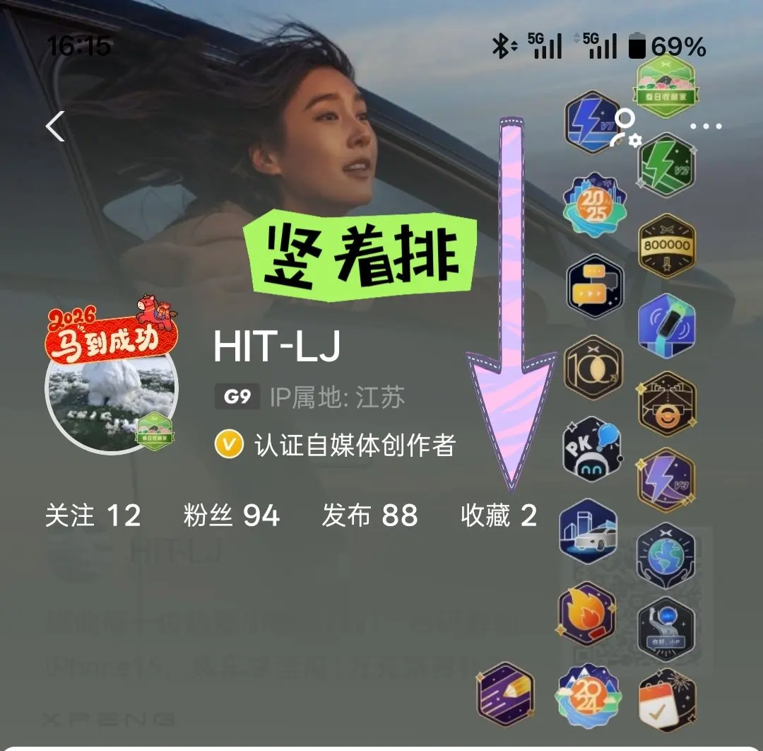 😁😁发现一个很有意思的事情,小鹏汽车app,点击"我的”,点击自己的用户名,在页面顶端能看到自己的勋章🎖️,接下来有意思的事情发生了,话不多说,先看视频: