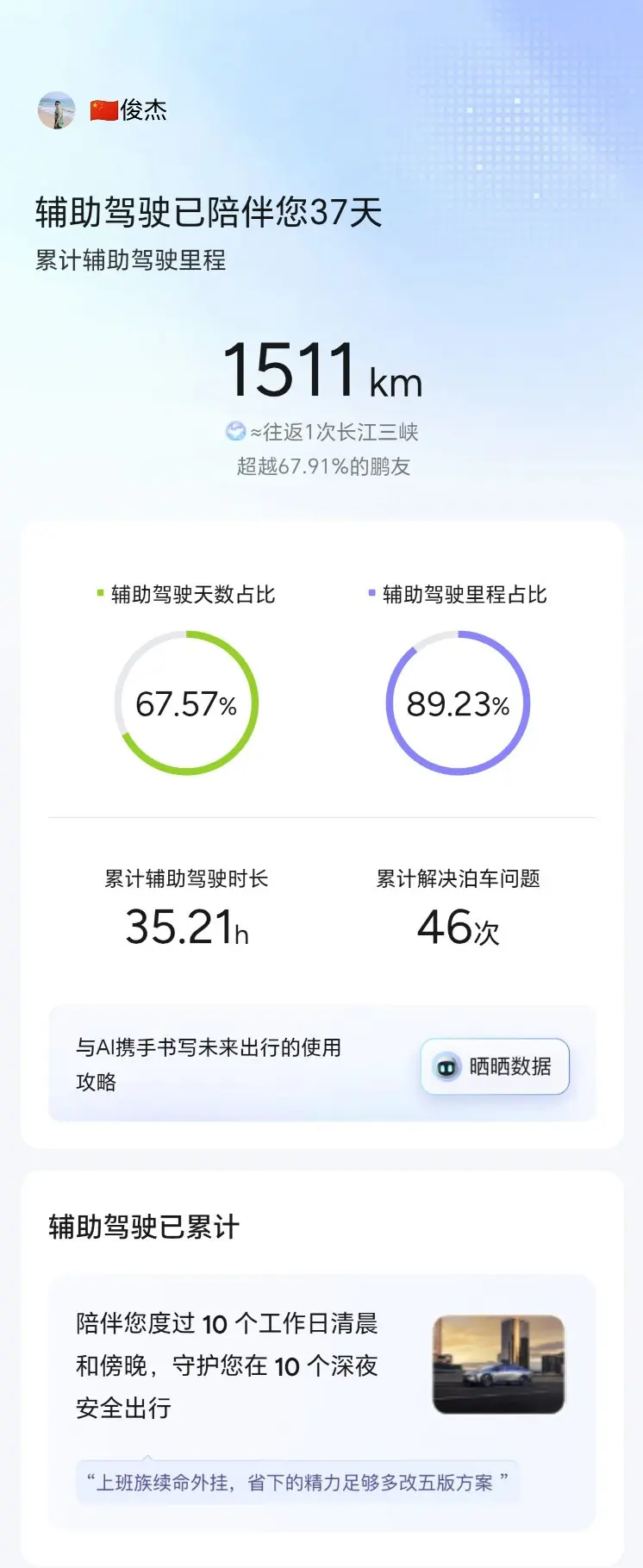 提车从店里出来,立马就用上了试驾中体验良好的NGP🤭——当初决定买它的很重要原因就是小鹏m03在15w以内城区智驾第☝🏻梯队的实力。用智驾开着和朋友去了正果老街,刚好赶上日落,边逛边欣赏景色,当时感觉买车已经值了👍🏻