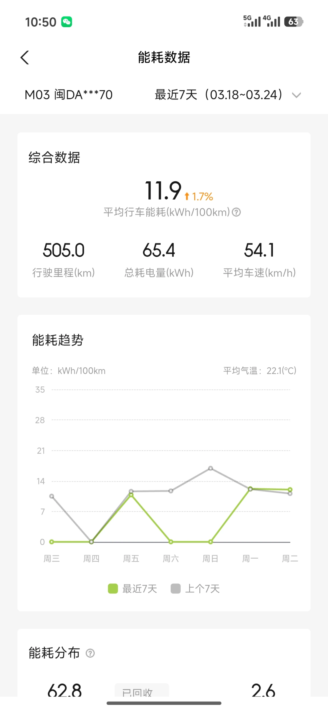 3.18~3.24行驶505km,总耗电65.4kWh,平均能耗11.9kWh/100km,仅比上周微涨1.7%。高效的三电系统+平稳驾驶习惯,让跨城通勤毫无续航焦虑,家充+超快充的补能网络,把“省钱又省心”打在公屏上!