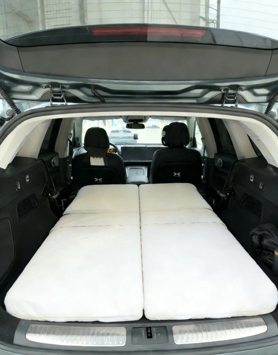 周末和家人去周边露营,G9的睡眠空间直接变身「移动卧室」。一键放倒后排座椅,铺上床垫,铺好柔软的被子,就能变成一张宽敞的大床。晚上躺在车里,透过全景天窗看星星,孩子在旁边抱着玩偶打滚,爱人靠在身边聊天,不用挤酒店,也能拥有最浪漫的露营体验。经济实惠有干净。第二天清晨,在鸟鸣和阳光里醒来,整个人都充满了电~