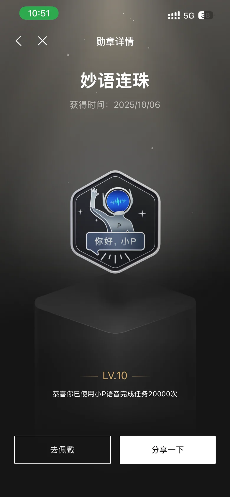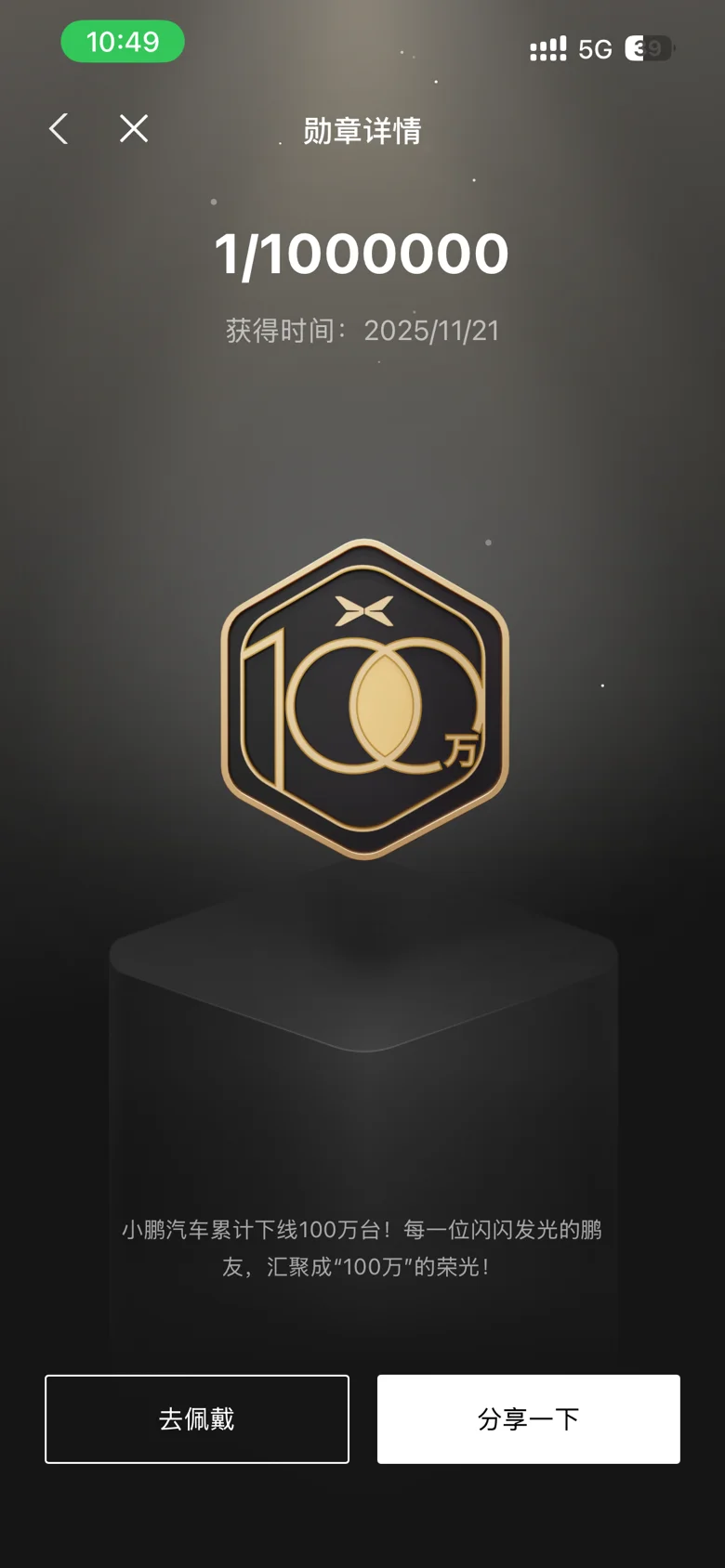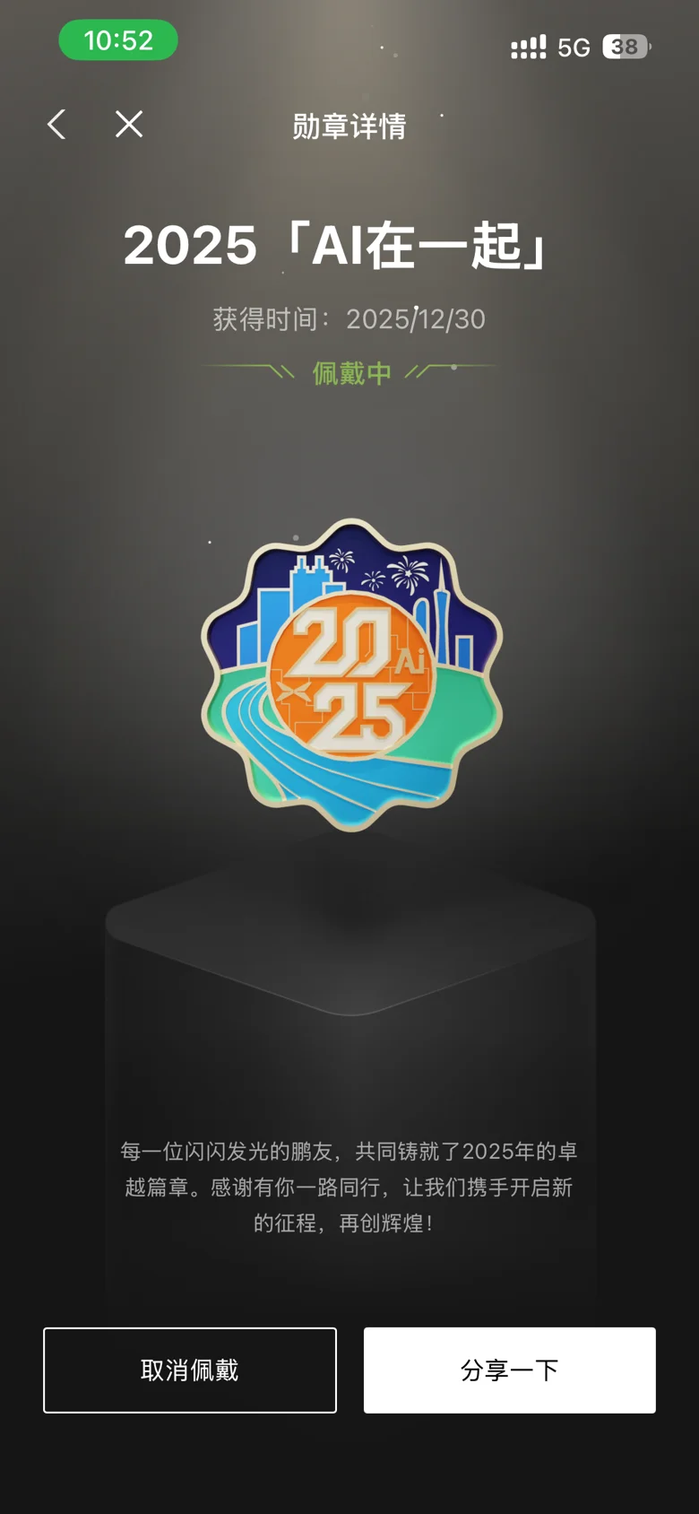 而我佩戴着2025的年度勋章,也是代表着我依旧是一个活跃的小鹏车主。