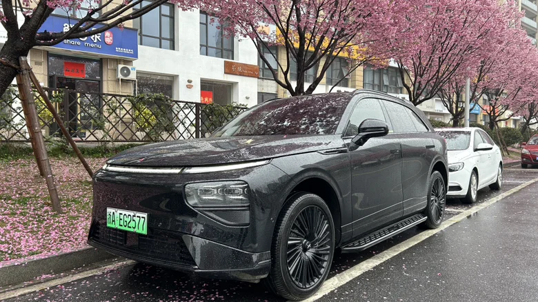 黑武士的哑光漆面在雨后泛着温润的光泽,利落的车身线条与樱花的柔美形成奇妙呼应。花瓣落在车顶、引擎盖,甚至顺着车窗缝隙轻轻滑落,像是春天给它盖了层粉色的薄纱。没有刻意的摆拍,只是随手按下快门,便定格了这份刚与柔的平衡——硬朗的机甲轮廓,被温柔的樱花轻轻包裹,竟生出一种“侠骨柔情”的氛围感。