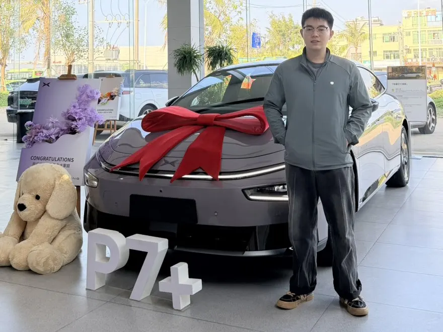 走进小鹏体验中心,P7+静静地停在聚光灯下。它不像传统轿车那样中规中矩,流畅的轿跑线条从车头一直滑向车尾,没有一丝多余棱角,像是从未来驶来的飞船。我忍不住伸手触碰它的隐藏式门把手——门把手悄然弹出,带着轻微的机械声,像在说“欢迎”。