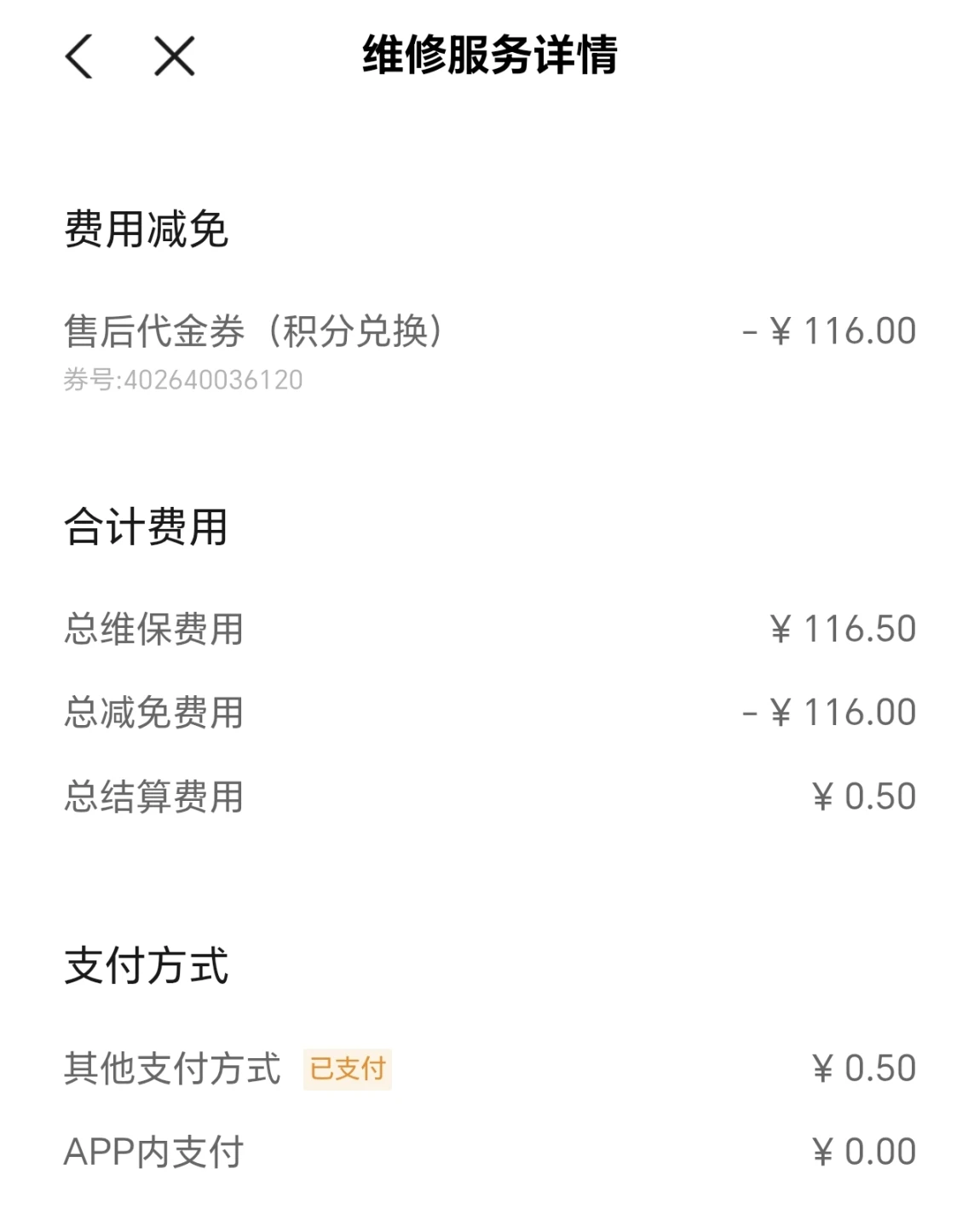 二次保养:116元(在官方买保险时送了优惠券)
