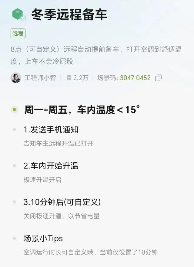 还可以通过智慧场景设置更多的车辆使用场景,丰富日常使用体验。