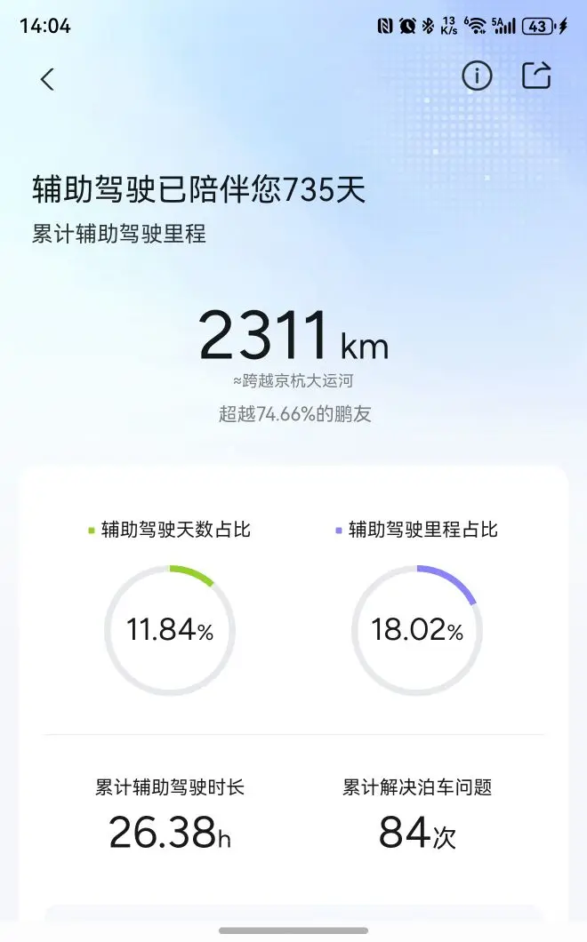 平时跑远门上高速不多,才3级,辅助驾驶才超2000km,市内都是自己驾驶,雪求不高,但上高速了是真香,可以和小P换着开,防止疲劳驾驶,尤其是中午和晚上