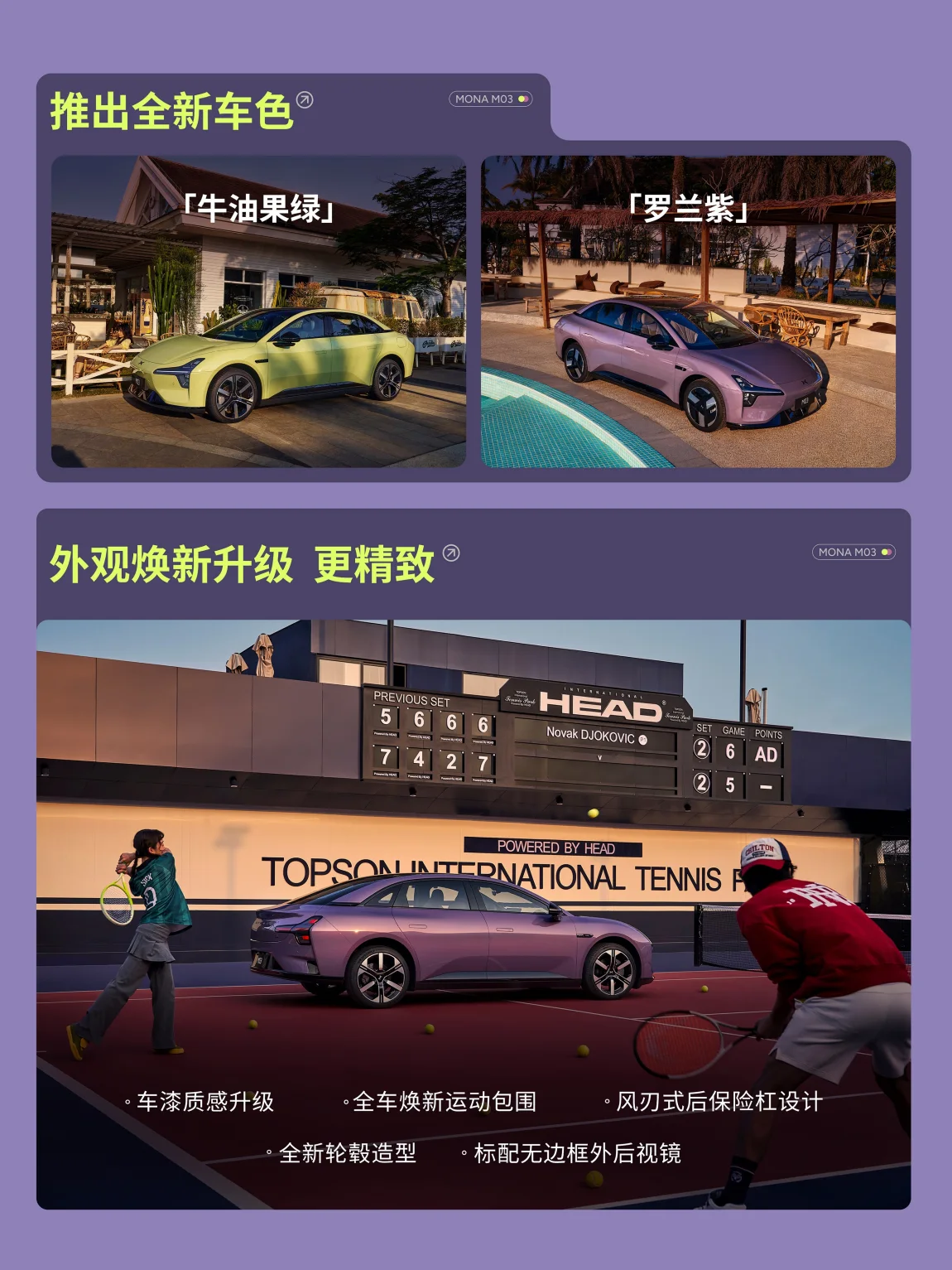 全新车色罗兰紫和牛油果绿,颜值在线;