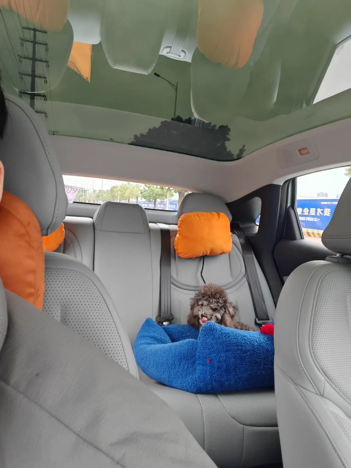 本来还以为🐶子第一次坐车会晕车或者闹腾,没想到全程一两百公里非常乖,一直安静地呆在窝里,不叫也不闹,有时听到外面声音还会伸直脖子看。放下车窗的时候,外面风吹得它的毛飞起来,特别可爱🤭开着开着,🐶子就趴在窝里睡着了🤣看得我心都化了,此刻真实地感受到了岁月静好🌷