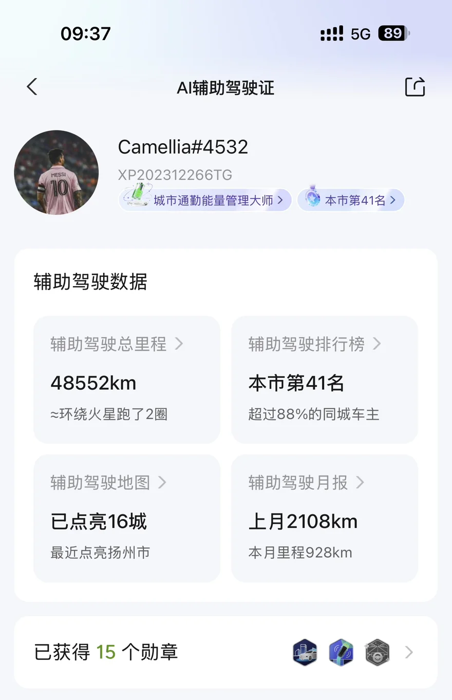成就勋章里,「智驾先锋LV.8」是我最常佩戴的。从最初的高速NGP到现在的城市NGP,小鹏智驾的每一次升级都让我惊喜,这枚勋章不仅是成就,更是我对小鹏智驾技术的信任。