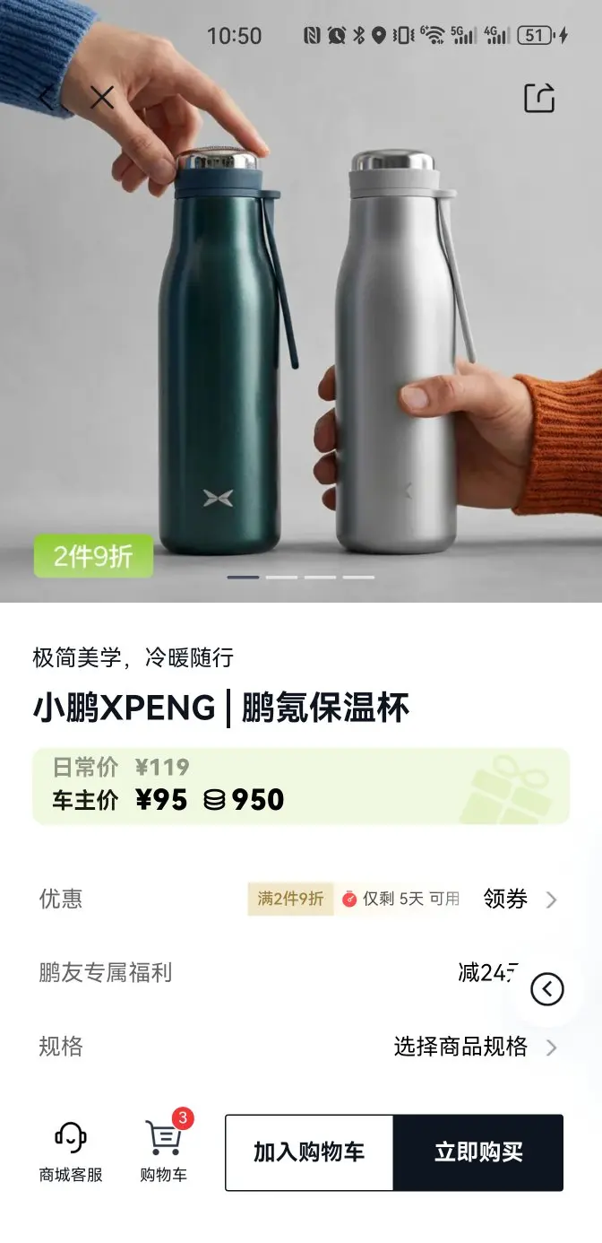 小鹏自家的鹏氪保温杯我种草超久!极简设计深得我心,银色和绿色款都高级感十足,杯盖带提手,单手开车也能轻松饮水。日常价119元,车主价仅95元,还能用950积分抵扣,最近还有满2件9折的优惠,我准备和闺蜜拼单。保温效果长达12小时,夏天装冰饮、冬天泡热茶,随时滋润喉咙,让长途驾驶不再枯燥。颜值和功能并存,放在车内杯架上,瞬间提升座舱氛围~