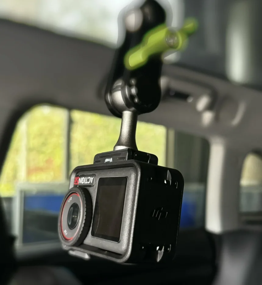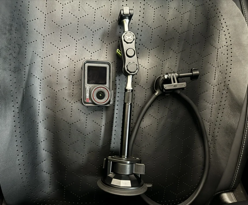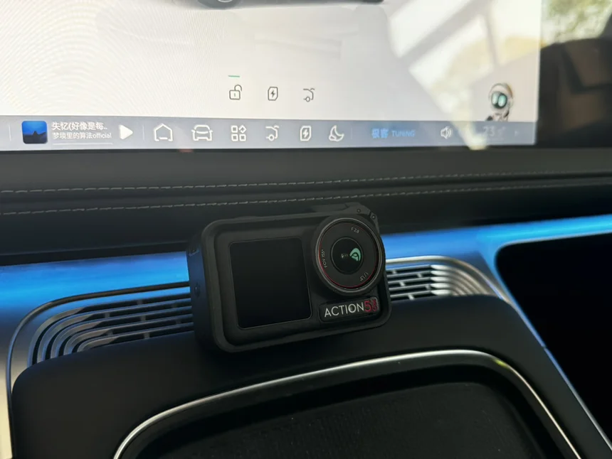 将Action 5 Pro作为行车记录仪使用时,连续录制能力出色。磁吸转接头的设计让配件切换效率极高,搭配吸盘支架适合固定在车窗内侧,全景天窗上等。“连续过弯+急刹时纹丝不动”。这种安装方式不遮挡视线,拆卸方便,适合快速切换拍摄场景。