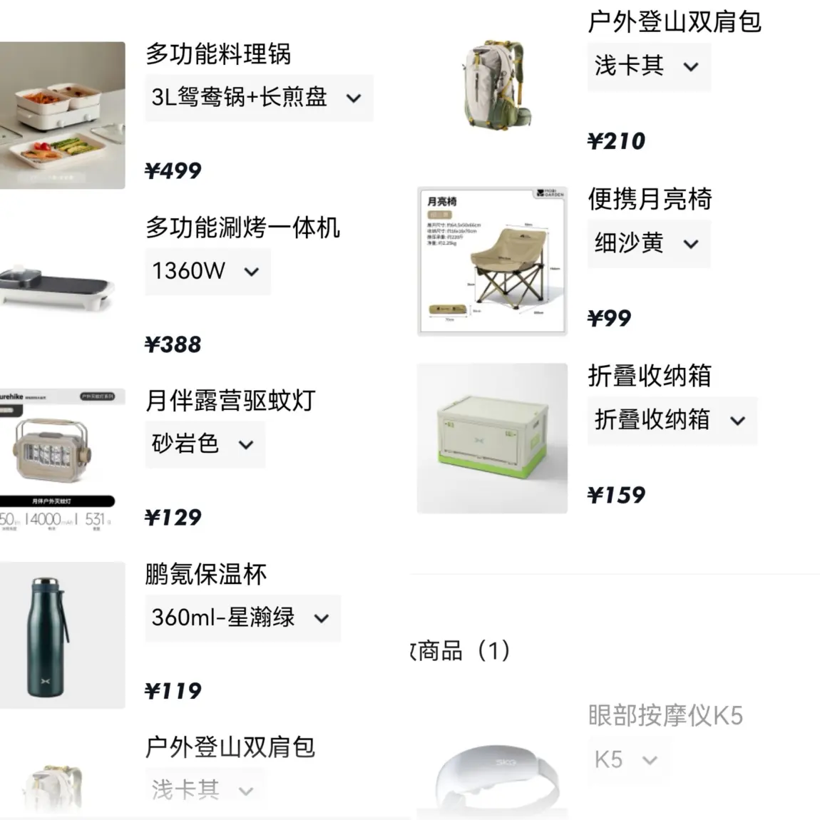 所以商城里面的两个户外可以用到的两个料理锅一直在收藏中