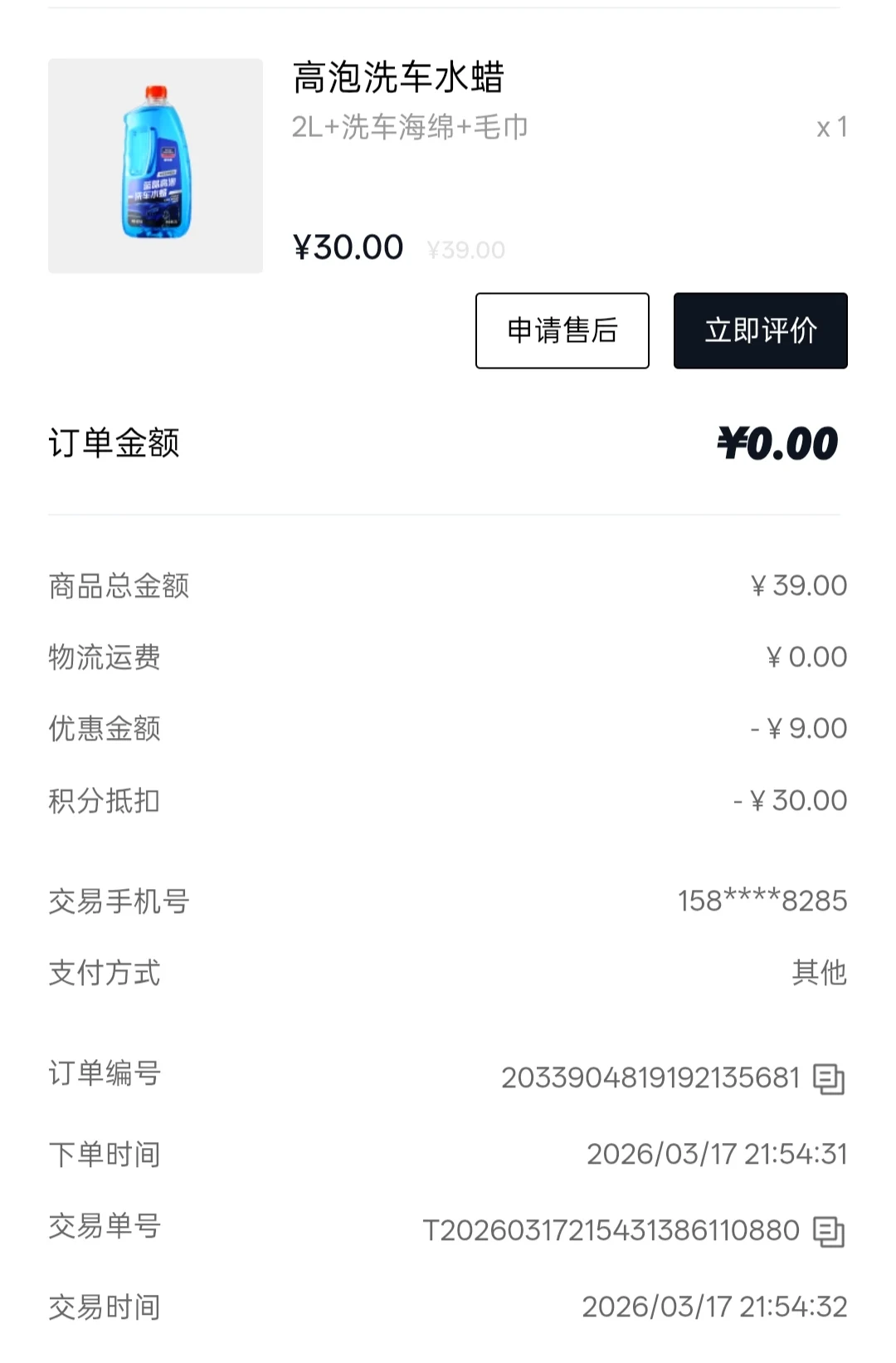 每逢过年过节,洗车价格涨了不说,还要排队很久,于是我就从商城买了这款高泡洗车水蜡,价格也不贵,鹏友专享价格30元,一次洗车的钱而已。