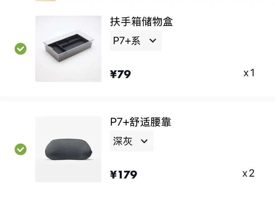 提了P7+几个月了,车内配件磨磨蹭蹭一直没买,长时间开车腰部有点难受,来两个腰靠来托住腰部吧。再来个置物盒放一些小杂物😏